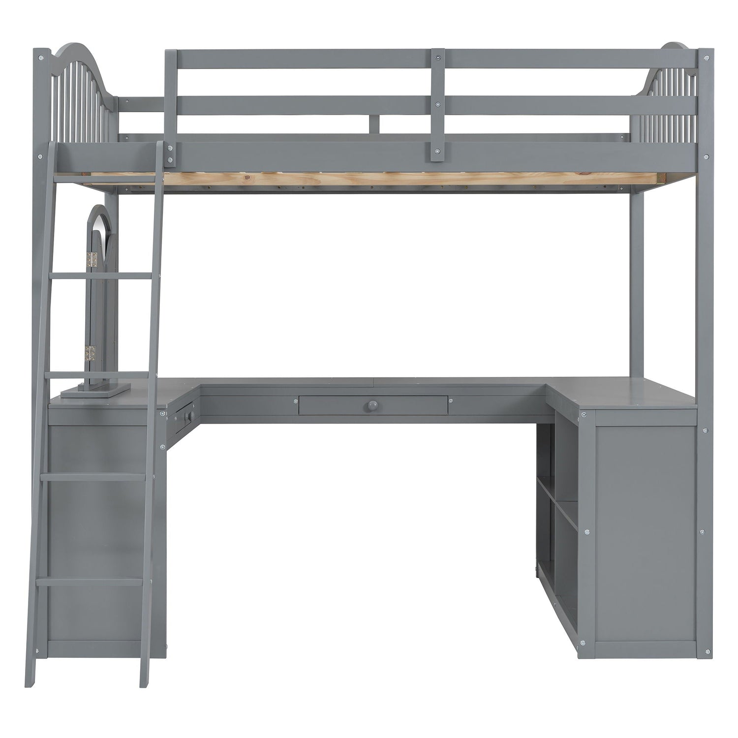 Couch.com Full Loft Bed With U Shaped Desk, Storage Compartments And Tri Fold Mirror Gray, with Storage, Durable Design, Modern Style, Wood Construction, Dark Gray Finish, Full Size