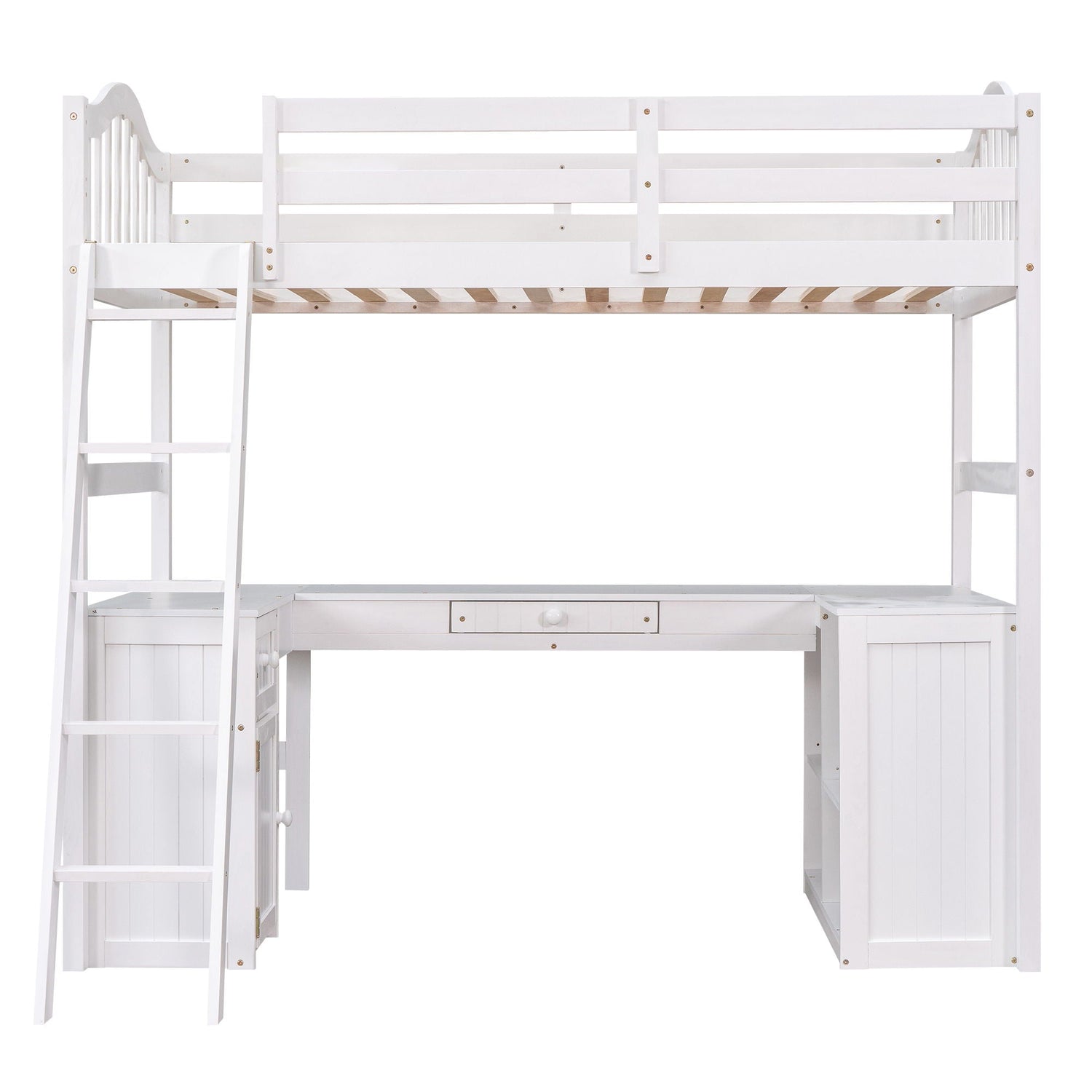 Couch.com Twin Size Loft Bed With Drawers, Cabinet, Shelves With Desk White, Wood Construction, White Finish, Twin Size