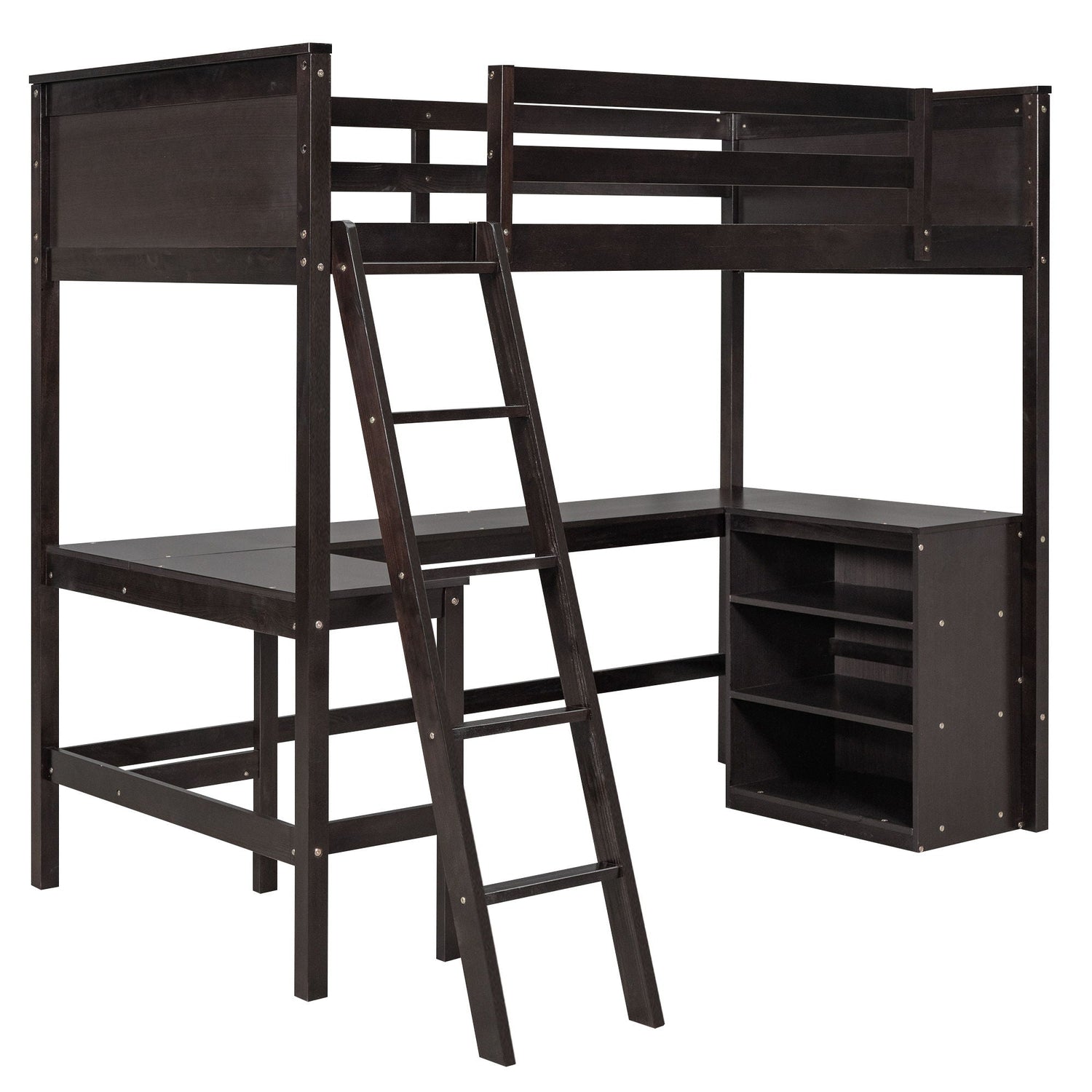 Twin Size Loft Bed With Shelves With Desk - Espresso