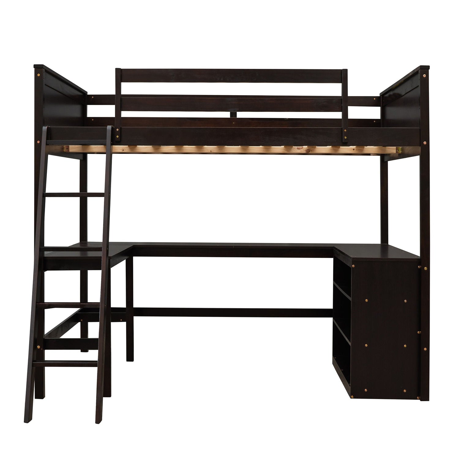 Full Size Loft Bed With Shelves With Desk - Espresso