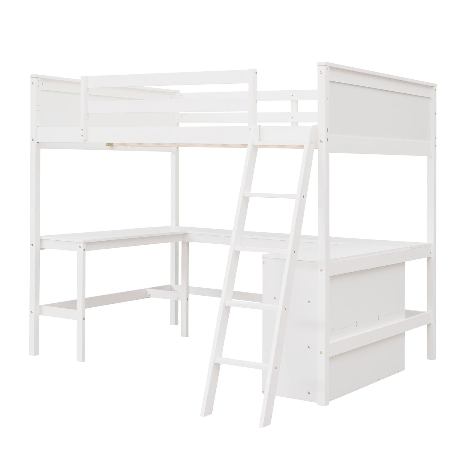 Solid Construction: This multi-functional loft bed is crafted from a solid pine wood frame with commercial-grade MDF boards for quality control and durability. The stable ladder can be assembled on either side of the bed. Guardrails are securely attached for added safety.