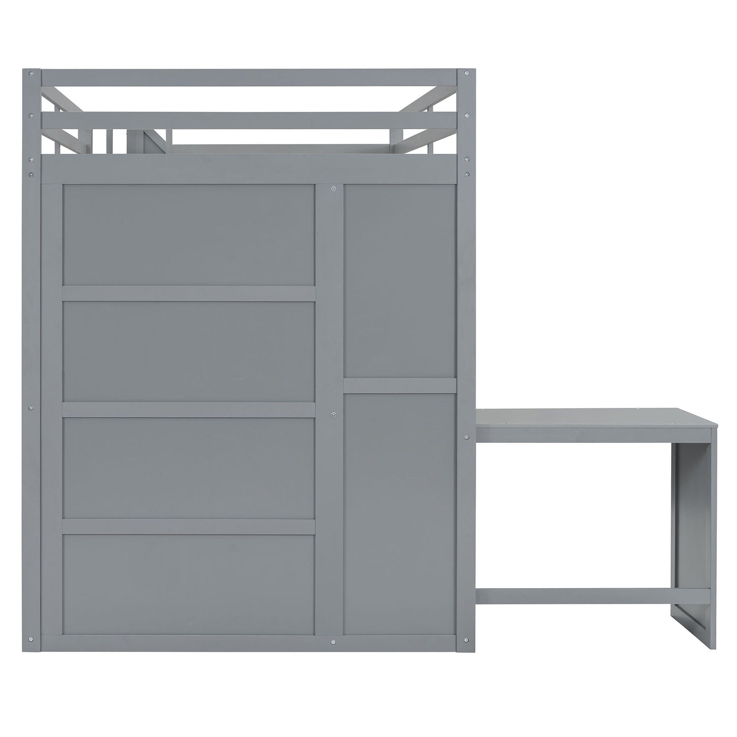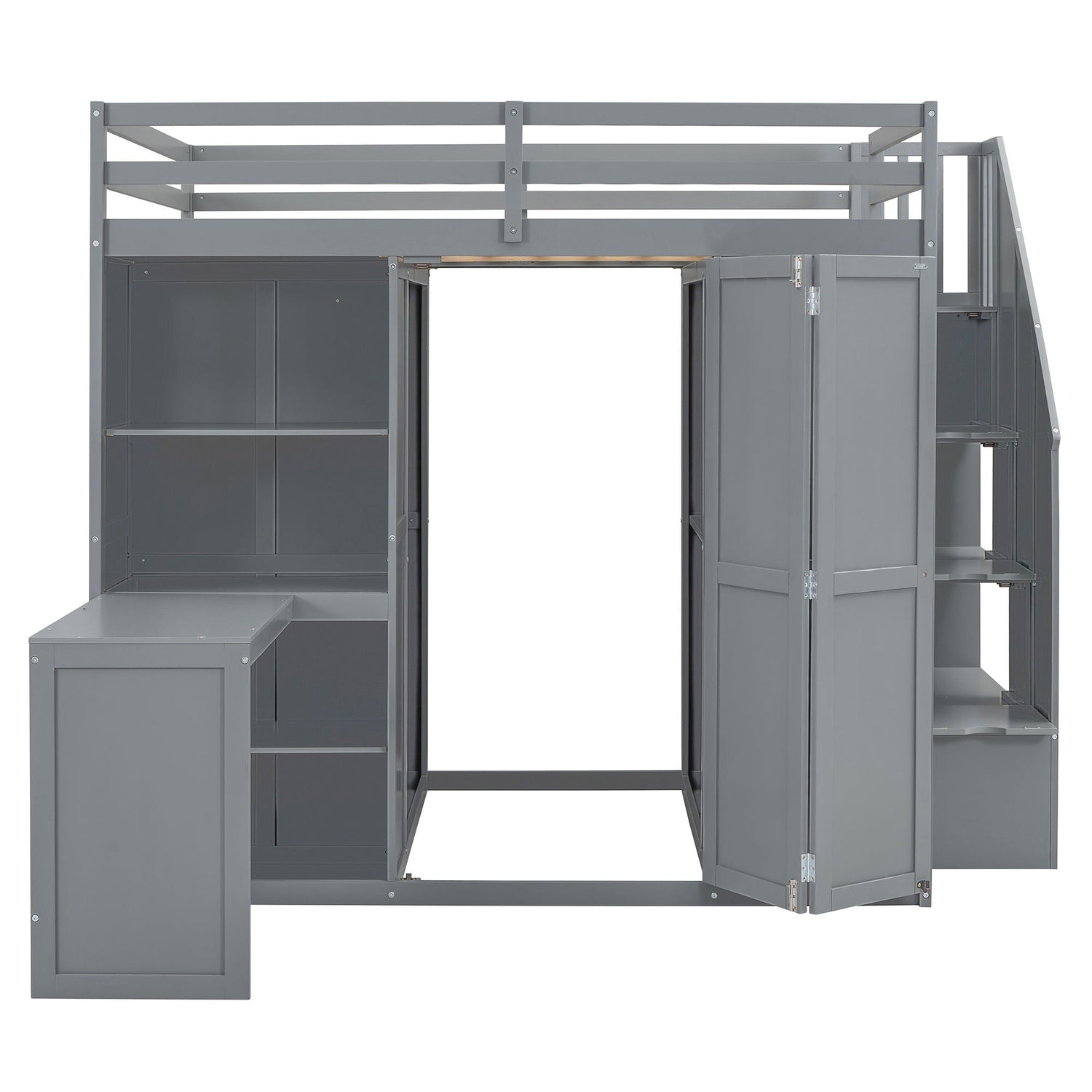 Full Size Loft Bed With Wardrobe, Desk And Shelves - Gray
