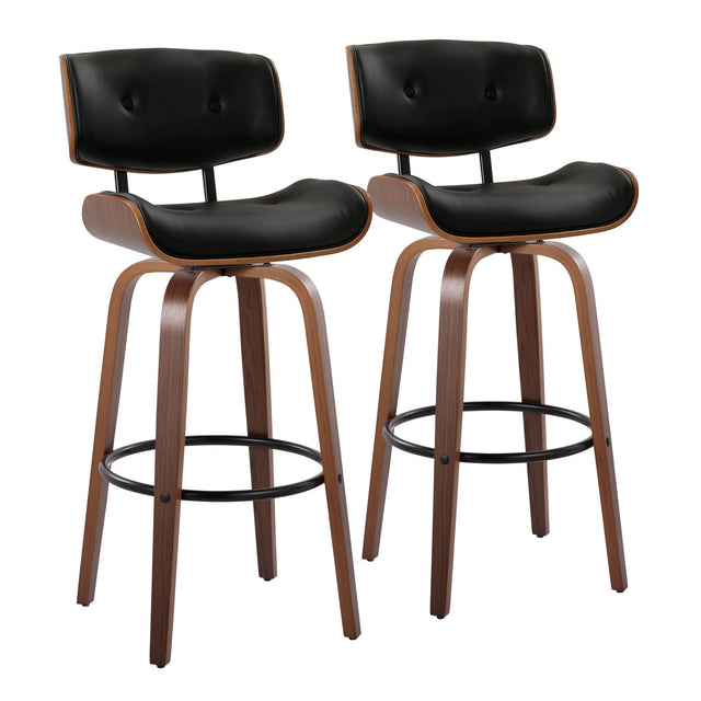 Lombardi - Mid-Century Modern Fixed Height Barstool With Swivel With Round Footrest (Set of 2) - Walnut / Black