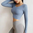 Long Sleeve Sports Crop Top with Chest Pad: Women's Gym T-Shirt