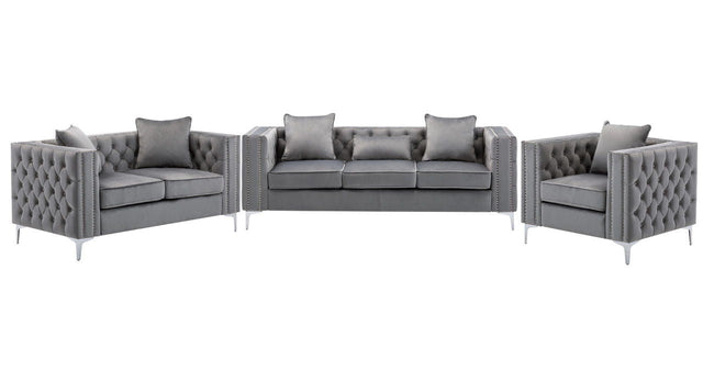 Lorreto - Velvet Fabric Sofa, Loveseat, Chair Living Room (Set of 3) - Gray