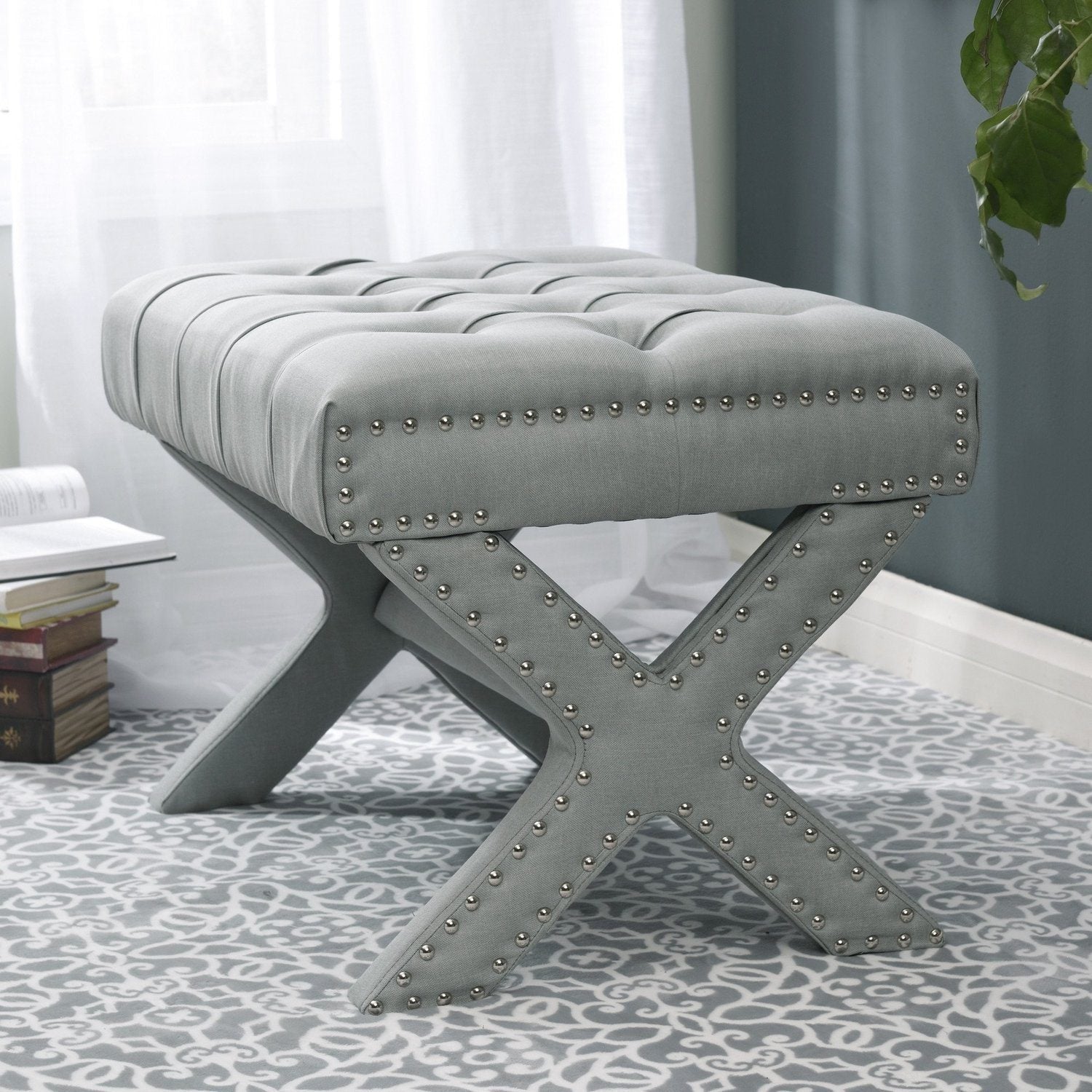 - ATTRIBUTES: Button Tufted, Silver Nailhead Trim, X-Leg
