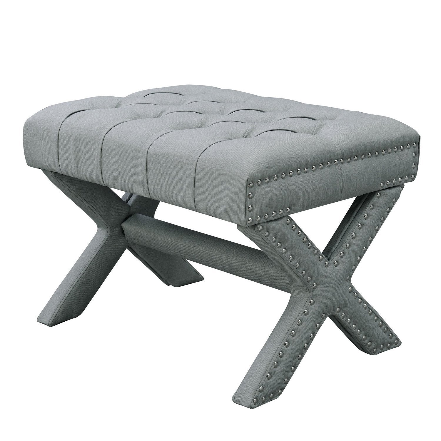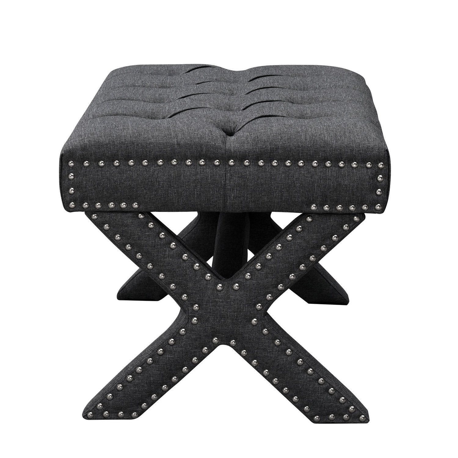- ELEGANT DESIGN - Traditional style Ottoman w/ Modern appeal, Handcrafted Upholstered tufting with linen fabric , Stylish Solid birch X-Leg design.
