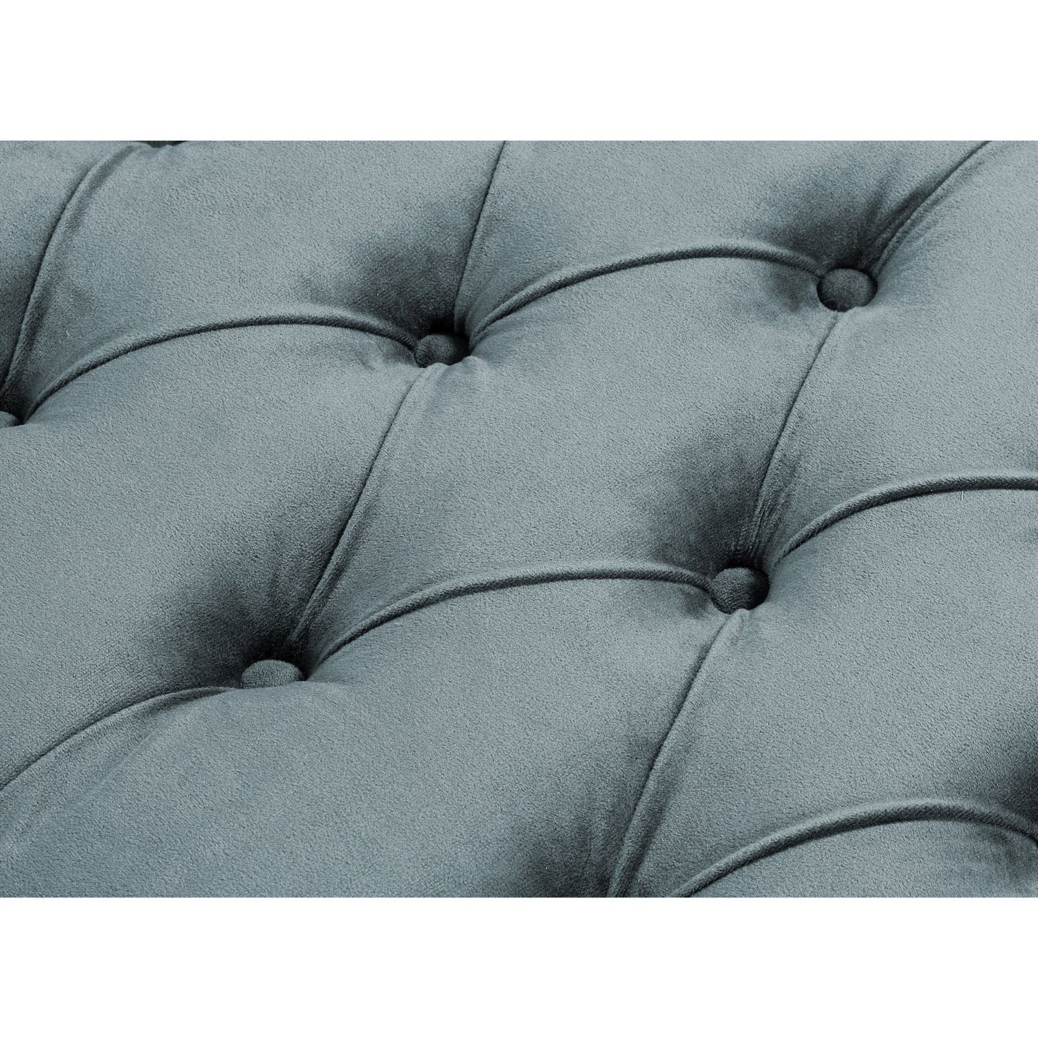 - ATTRIBUTES: Button Tufted, Silver Nailhead Trim, X-Leg