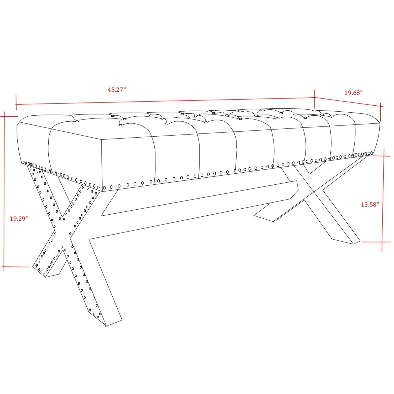 - ELEGANT DESIGN - Traditional style Bench w/ Modern appeal, Handcrafted Upholstered tufting with soft velvet fabric , Stylish Solid birch X-Leg design.