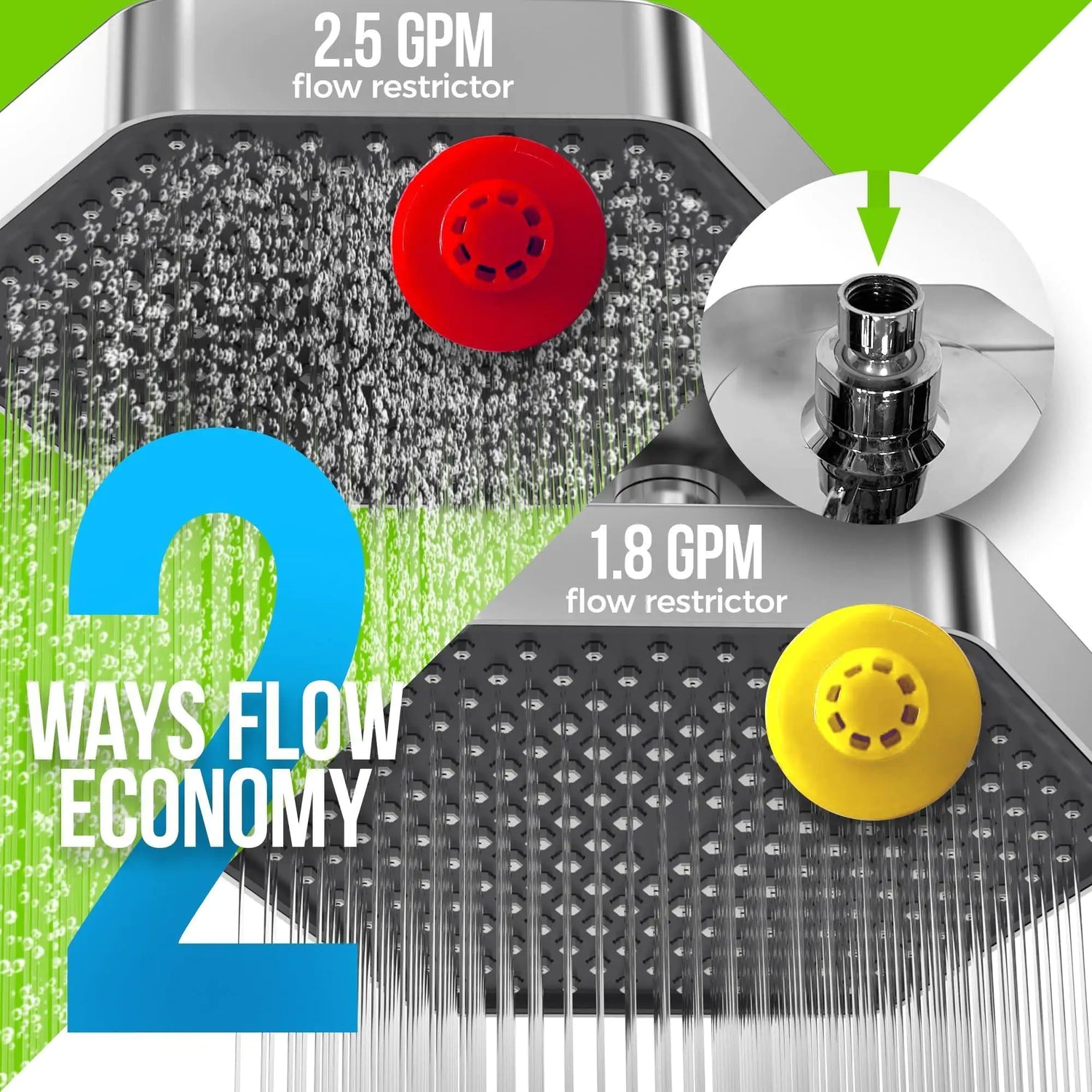 Efficient: This water filtration shower head comes with 1.8 GPM & 2.5 GPM flow restrictors so that the buyers can choose their water efficiency to match their needs.