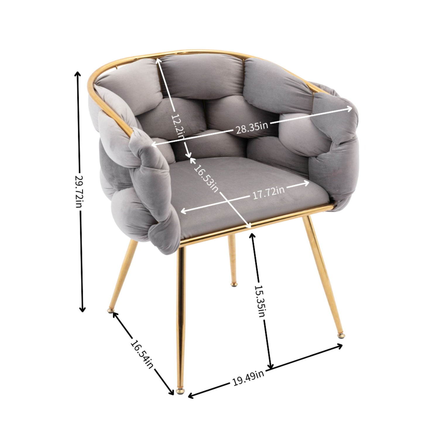 Luxury Modern Simple Leisure Velvet Single Sofa Chair Bedroom Lazy Person Household Dresser Stool Manicure Table Back Chair (Set of 2) - Gray / Gold