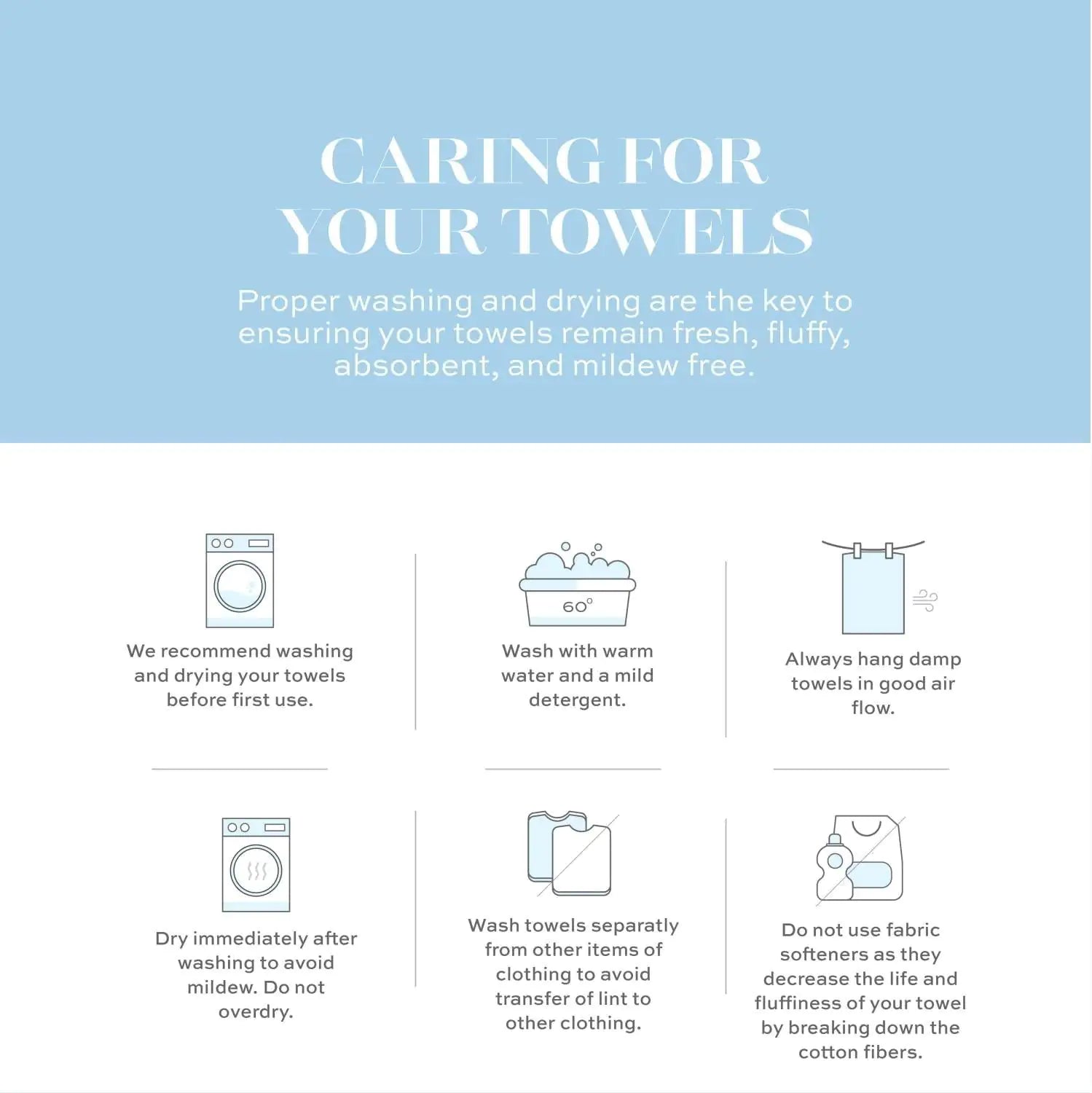 CARE INSTRUCTIONS - Simply toss them in the machine and wash. After the first wash, these towels will fluff up beautifully, feel fresh and soft. These towels are specially processed to make the dryer take less time, thus saving time and energy costs. Keep The Lint Trap Clean. Some Lint May Be Observed in First Wash. This Will Not Affect The Look, Feel or Performance of Towel.