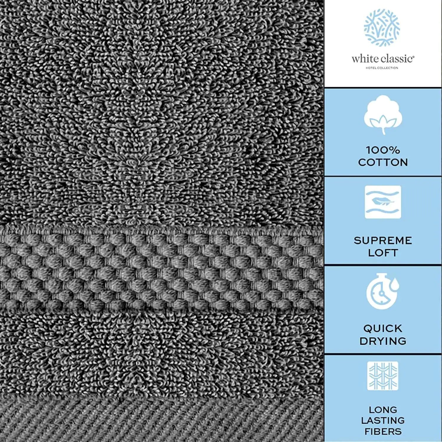 BLISSFUL LUXURY FEEL - At the end of a long day, or at the start of a new one, you deserve a little luxury. Transform your home into a sanctuary and your bathroom into a mini spa with the help of White Classic deliciously soft, comfy elegant towels. Fabulous selection of colors will make your bedroom look like it belongs in a magazine. Experience a true luxury super soft feel every time you use them. The surface is smooth and not easy to shed, adding to their durability. Edges are reinforced with double needle embroidered stitching to prevent fraying from long-term use and laundering. Perfect for spa, poolside, bathroom, Beach, salon, college dorm room essentials.