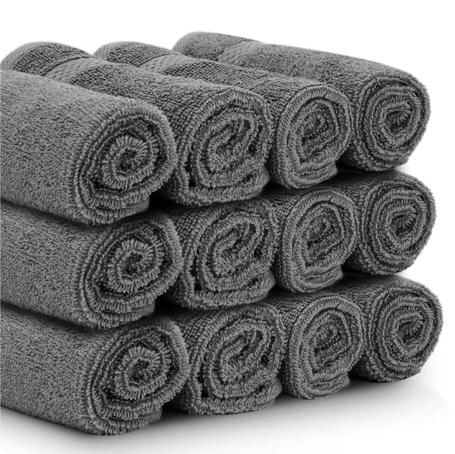 HOTEL COLLECTION - 12-Piece Washcloths are generously Sized at 13x13 inches. Each towel is 100% combed cotton - soft, durable, quick-dry, and wonderfully absorbent. It is more absorbent than any Turkish Cotton Face Towel.