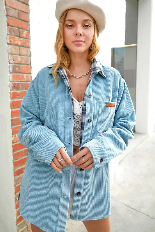 The Madera Shacket is a versatile and trendy wardrobe essential, combining the style of a shirt with the warmth of a jacket. Its relaxed fit and comfortable design make it ideal for layering, providing a fashionable and cozy option for various seasons. The Madera Shacket is a perfect choice for achieving a casual yet chic look, whether you're dressing up for a day out or simply adding a stylish layer to your ensemble.
