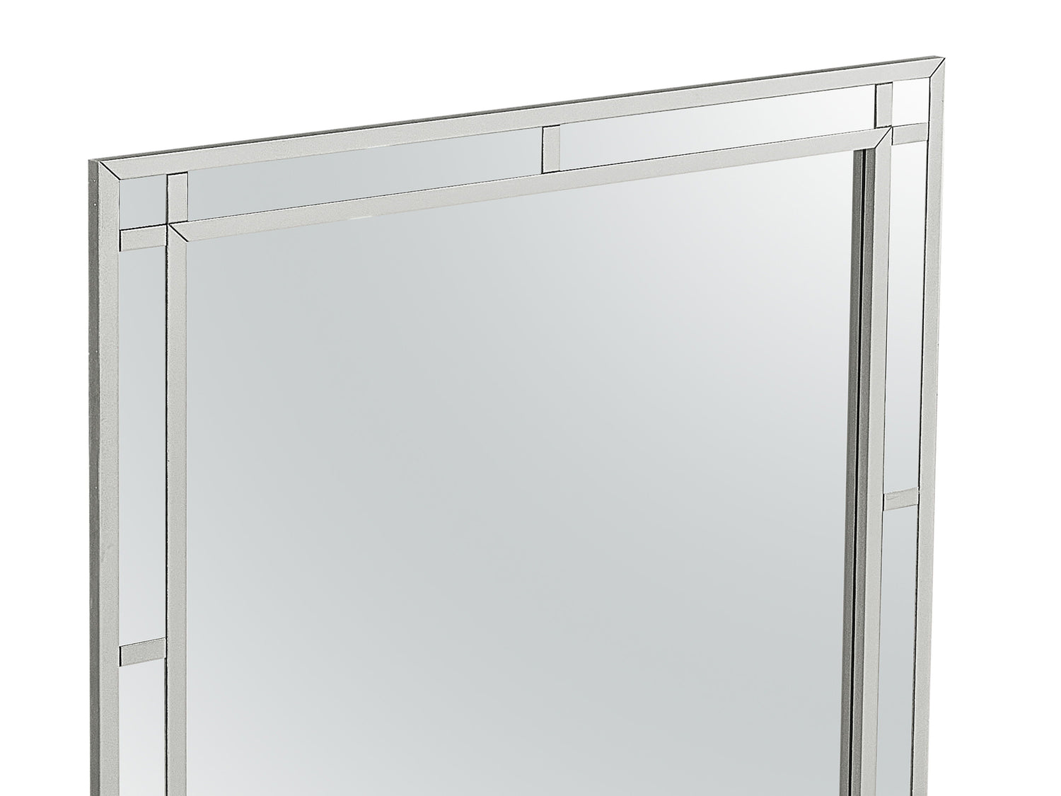 - Unique Finish: The silvery champagne finish frames the mirror accents beautifully.
