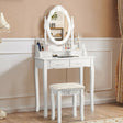 Makeup Vanity Dressing Table Set with Dimmable Bulbs Cushioned Stool-White