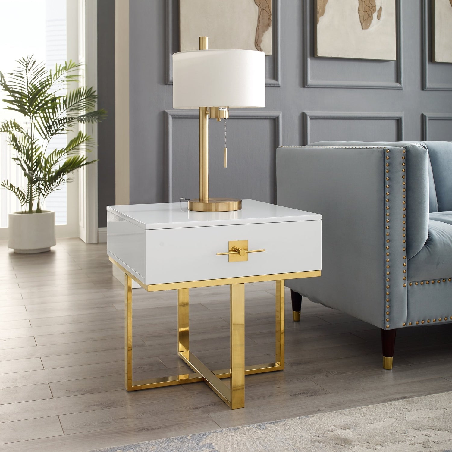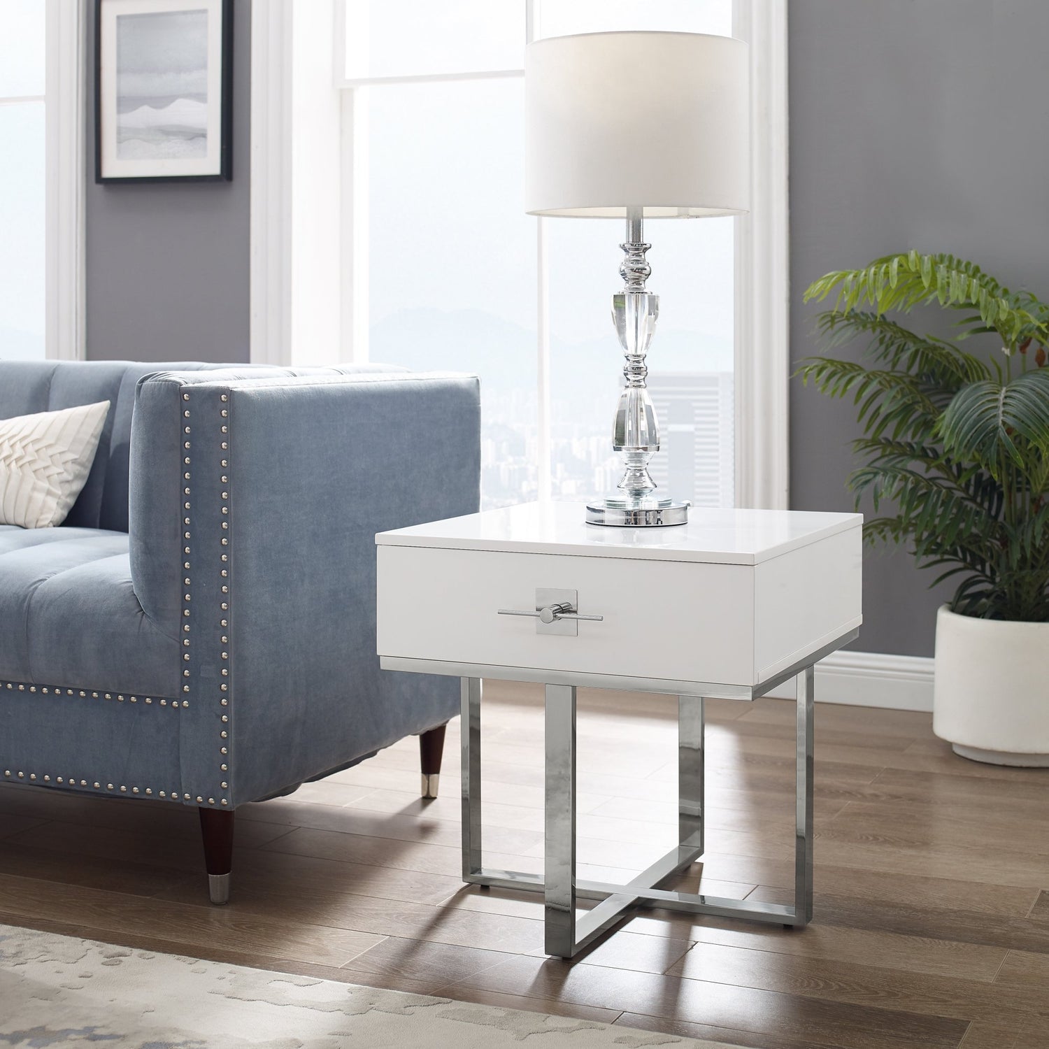 - ELEGANT DESIGN - This unique luxe side table with polished stainless steel geometric base and high gloss top infuses an exquisite accent to your main furniture to create that modern cozy atmosphere in your home and enhances the surrounding décor.