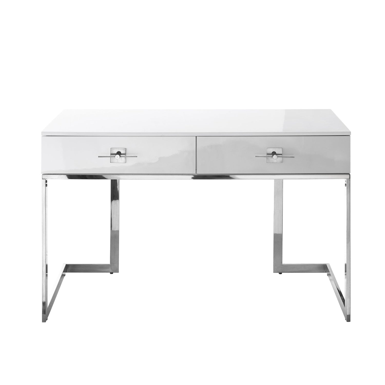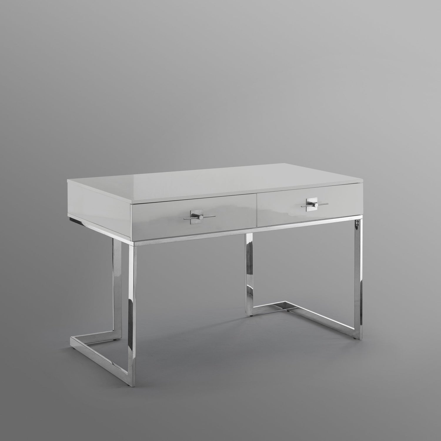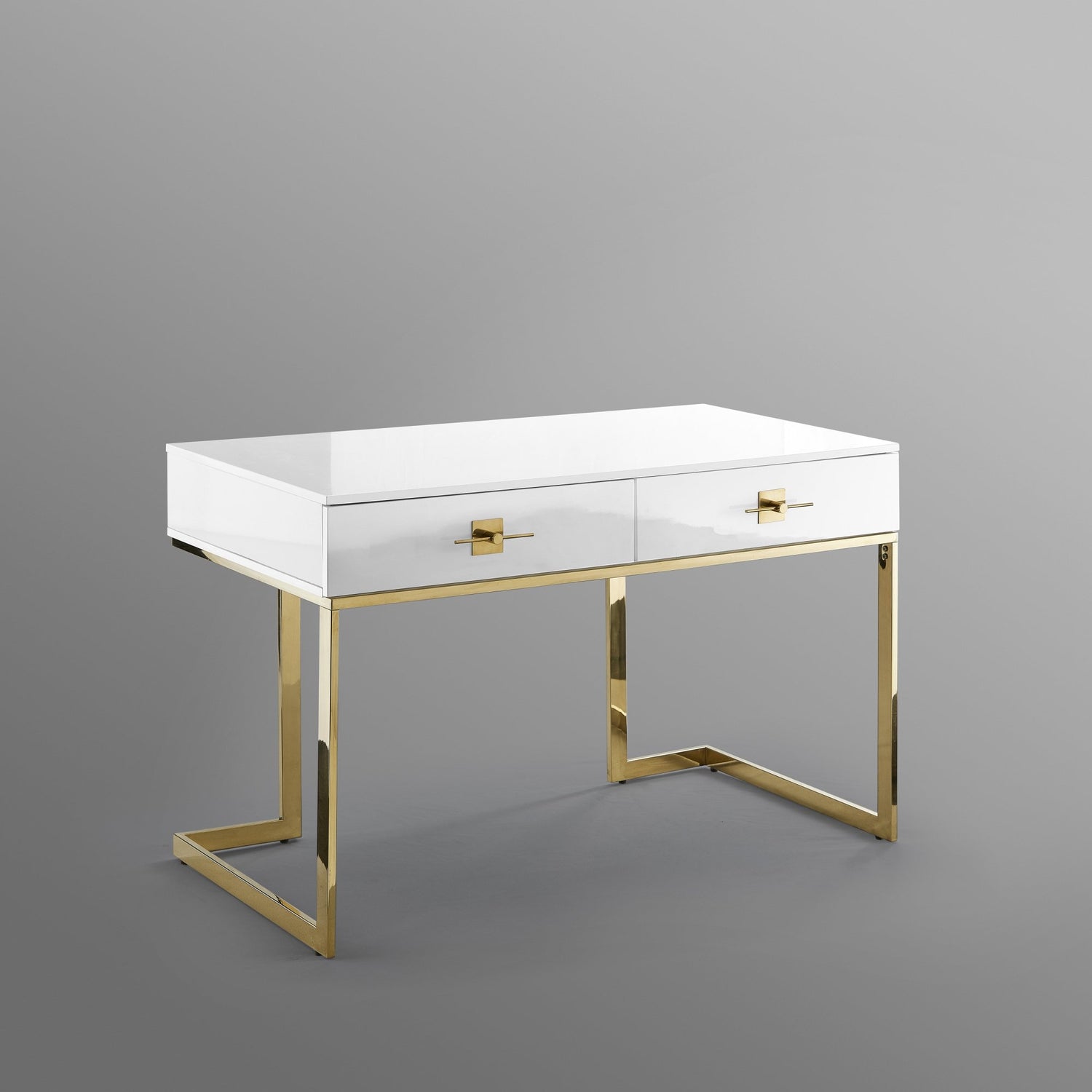 - ELEGANT DESIGN - This unique luxe writing desk with polished stainless steel geometric base and high gloss top infuses an exquisite accent to your main furniture to create that modern cozy atmosphere in your home and enhances the surrounding décor.
