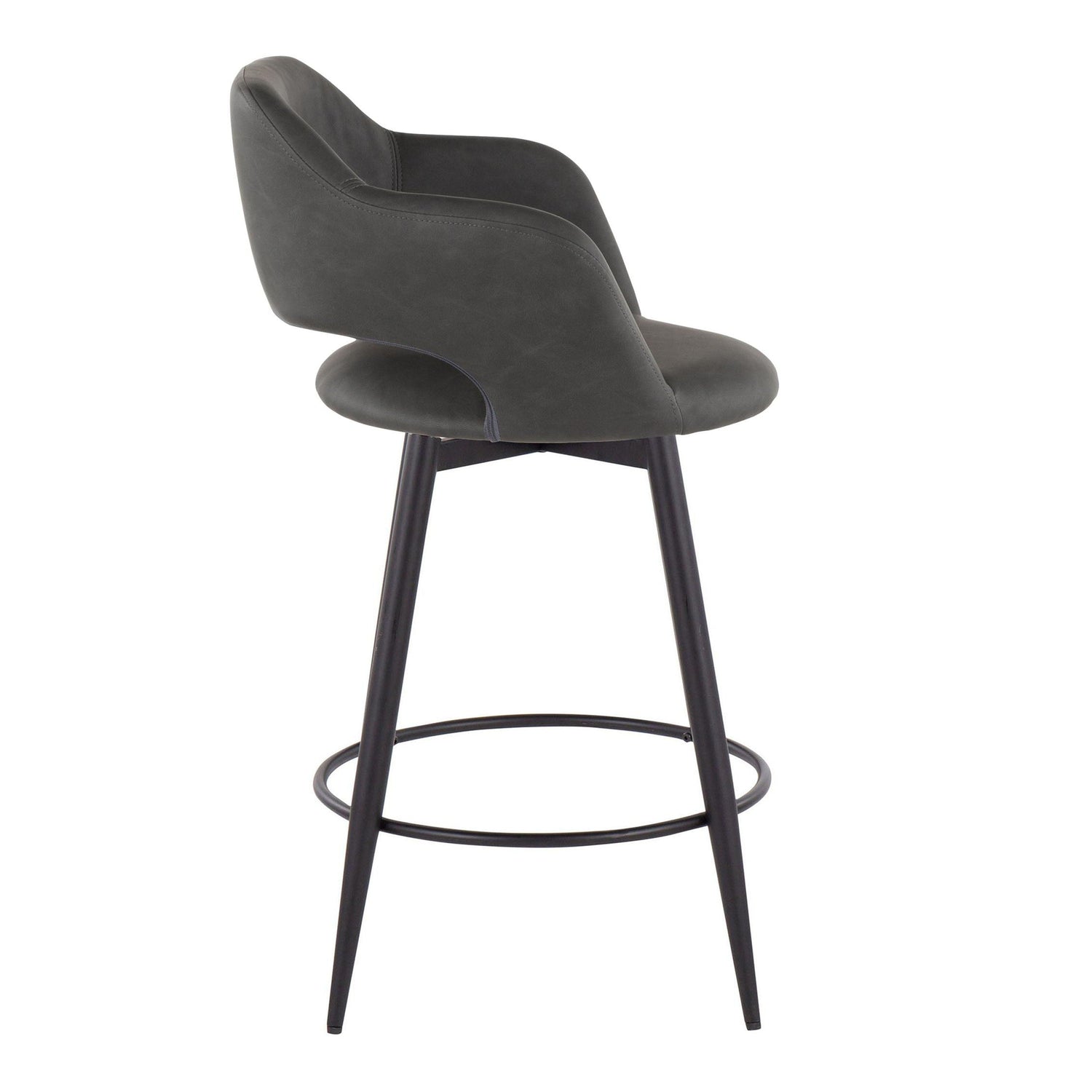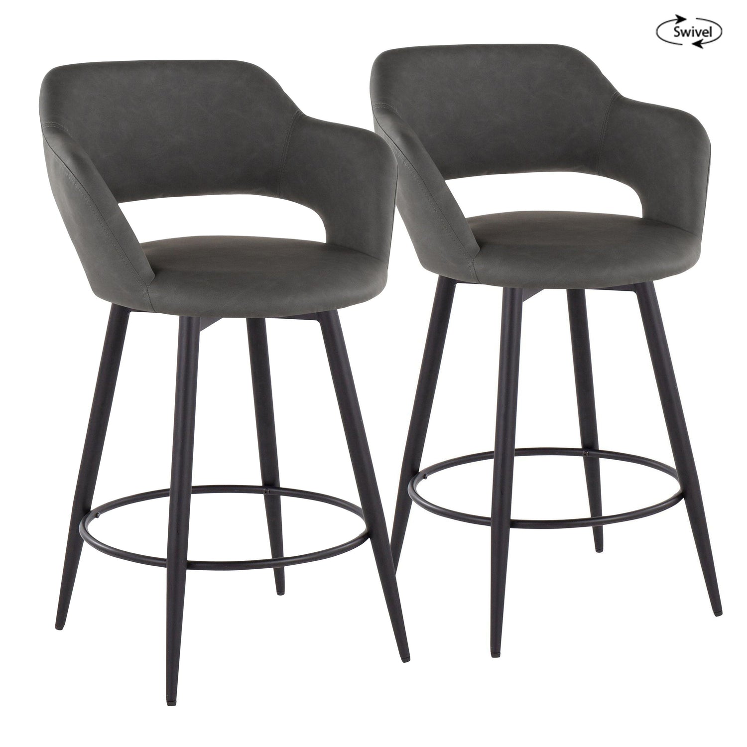 Margarite - Contemporary Fixed Height Counter Stool With Swivel With Round Footrest (Set of 2) - Matte Black / Gray