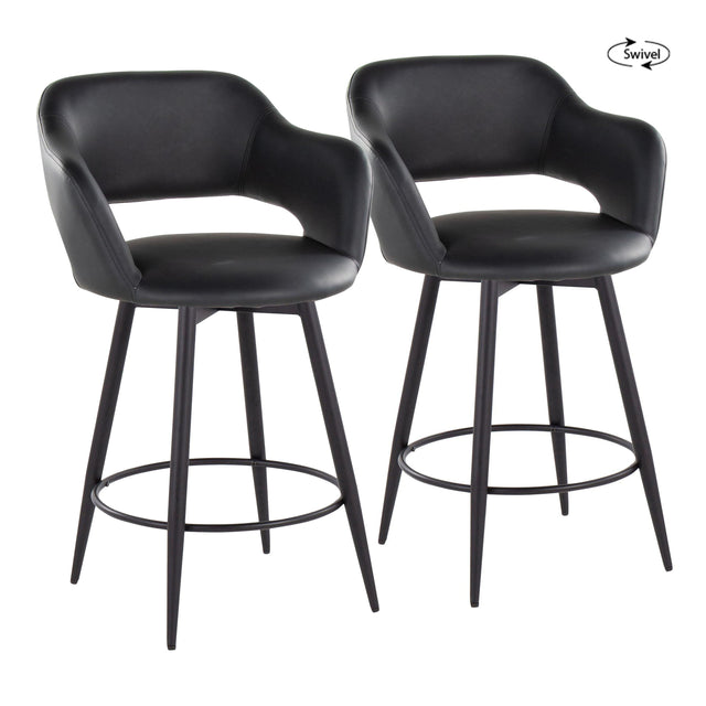 Margarite - Contemporary Fixed Height Counter Stool With Swivel With Round Footrest (Set of 2) - Matte Black
