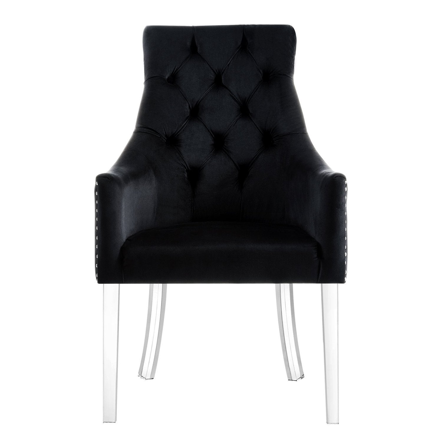 - GLAM lucite acrylic legs and handmade nailhead trim