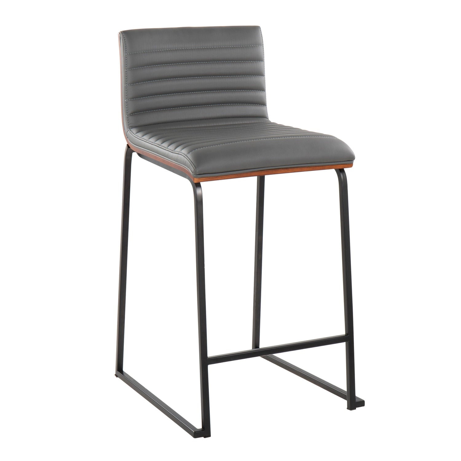 Mason Mara - Contemporary Fixed Height Counter Stool (Set of 2) - Black / Walnut / Gray