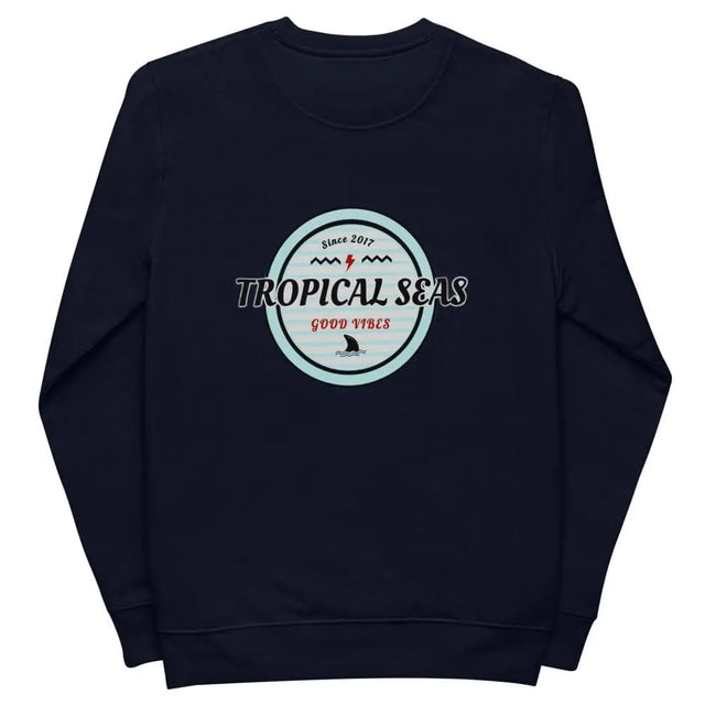 Men's Tropical Seas 80’s Eco Sweatshirt - French Navy / S is backordered and will ship as soon as it is back in stock.