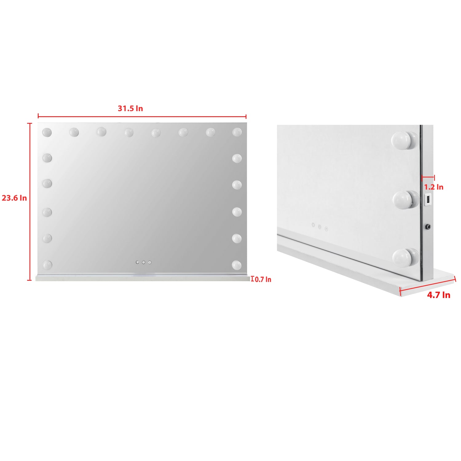 - CLASSIC GLAM – Our Hollywood vanity mirror with 18 dimmable LED bulbs, 3 color modes, a touch sensor, 1 USB port and AC power adapter add glamor and luxury to your interior. It is so convenient for you to charge your phone while putting makeup on