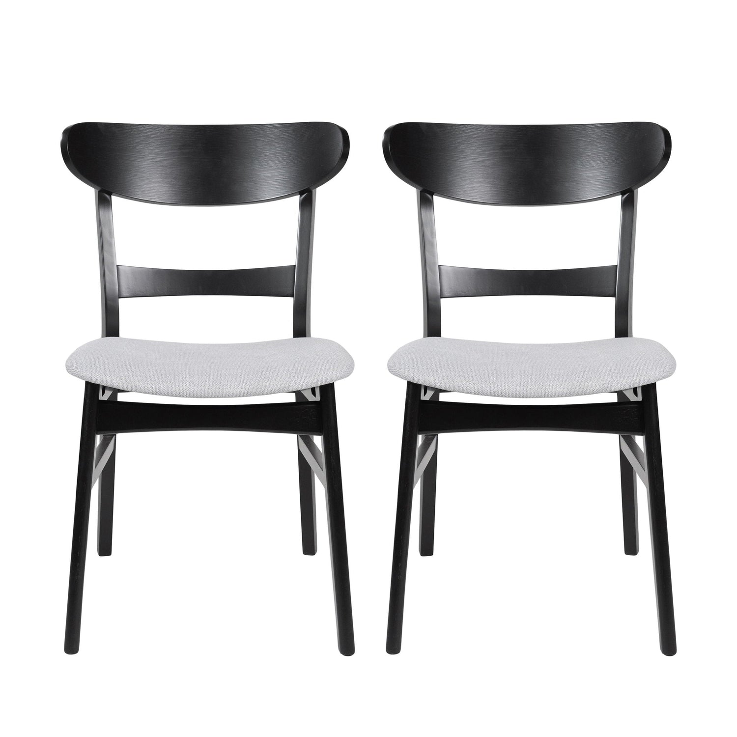 Dining Chair (Set of 2), Mid Century Dining Chairs With Cushioned Seats And Wood Frame - Light Gray / Black