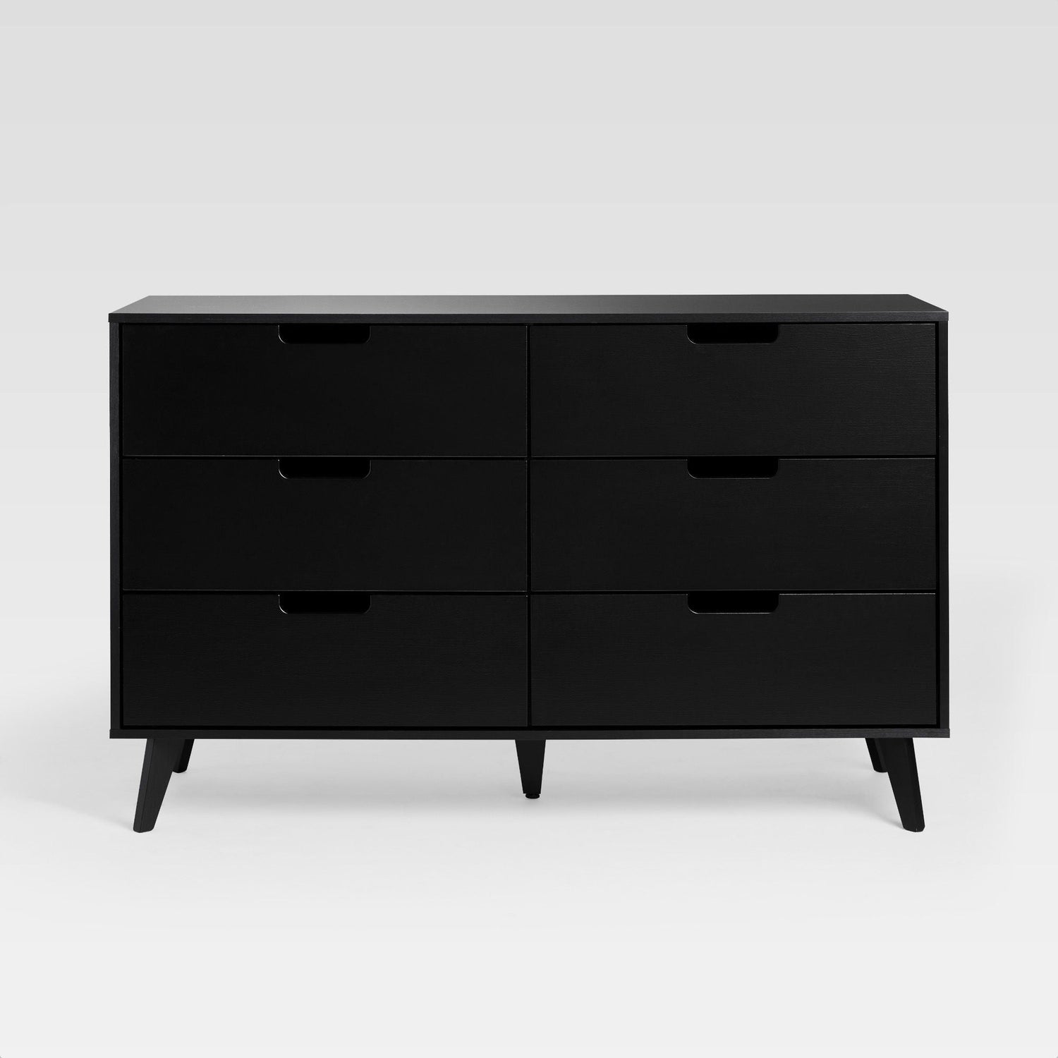 Mid-Century Hans 6 Drawer Dresser With Cut-Out Handles - Black