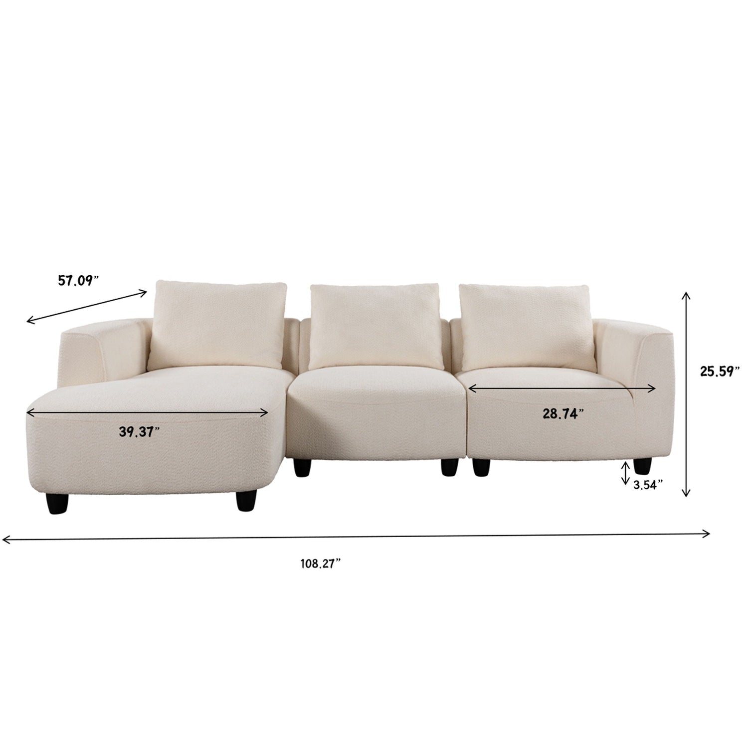 Mid - Century Modern Three Seater Sofa With Upholstered Footstool Fabric For Living Room Or Bedroom - Beige