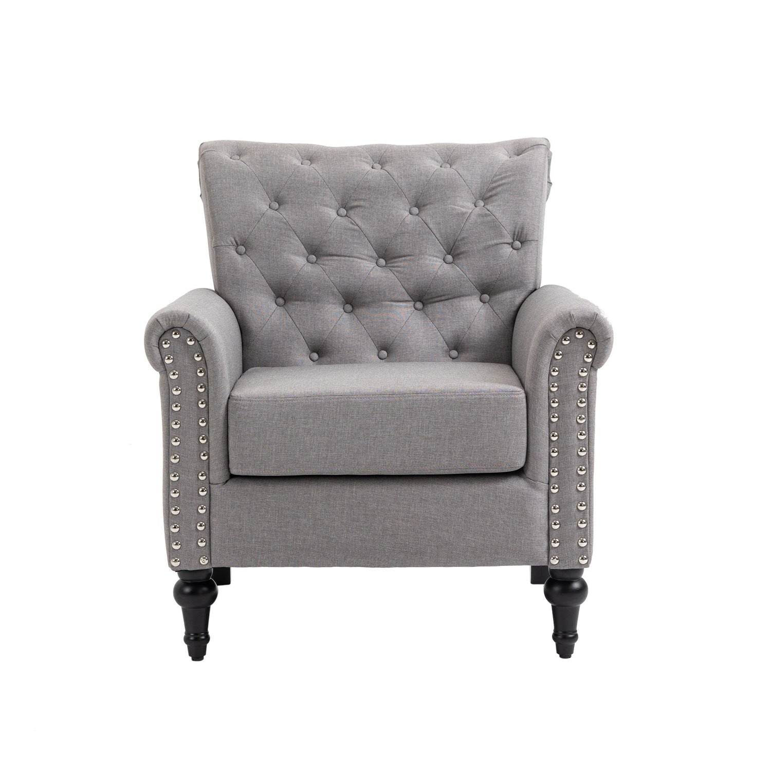 29.92" Mid-Century Modern Accent Chair, Linen Armchair With Tufted Back / Wood Legs, Upholstered Lounge Arm Chair Single Sofa For Living Room Bedroom - Gray