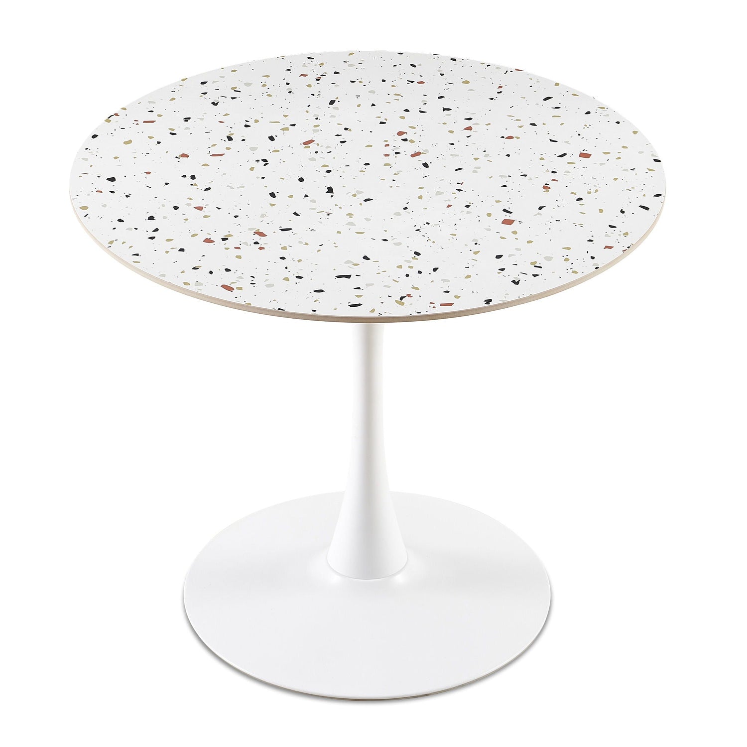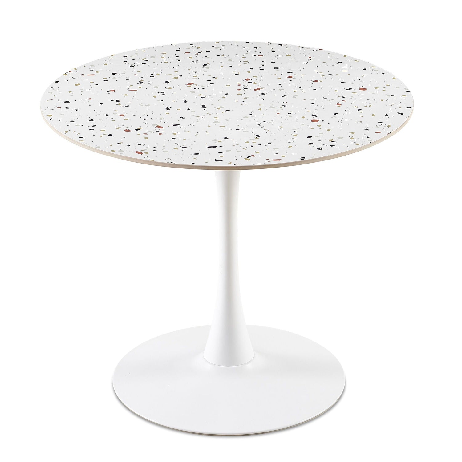 Mid-Century Stone Round Dining Table For Dining Room, Living Room, Cafe, Easy Clean - White by Couch.com