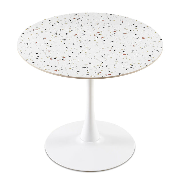 Mid-Century Stone Round Dining Table For Dining Room, Living Room, Cafe, Easy Clean - White