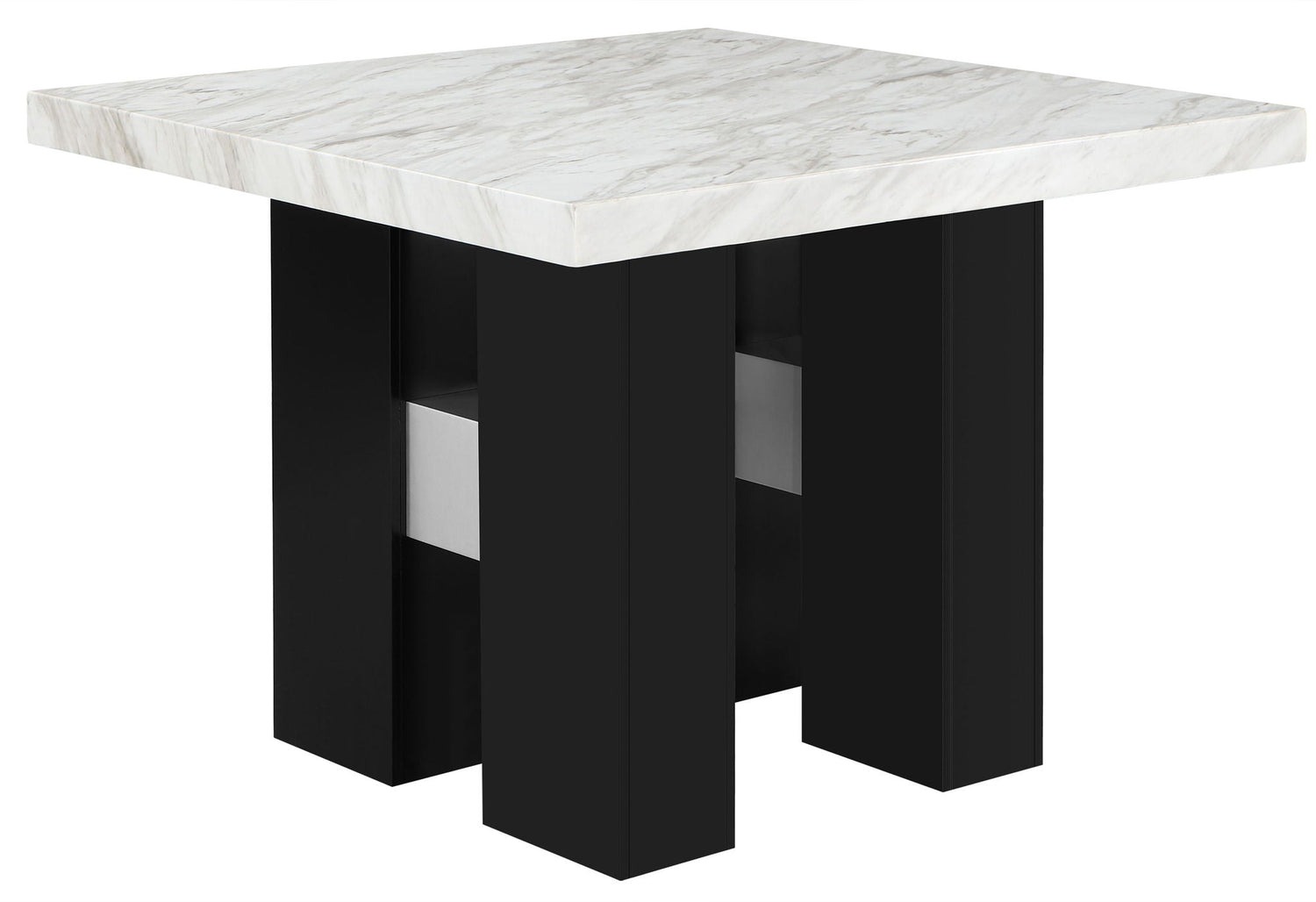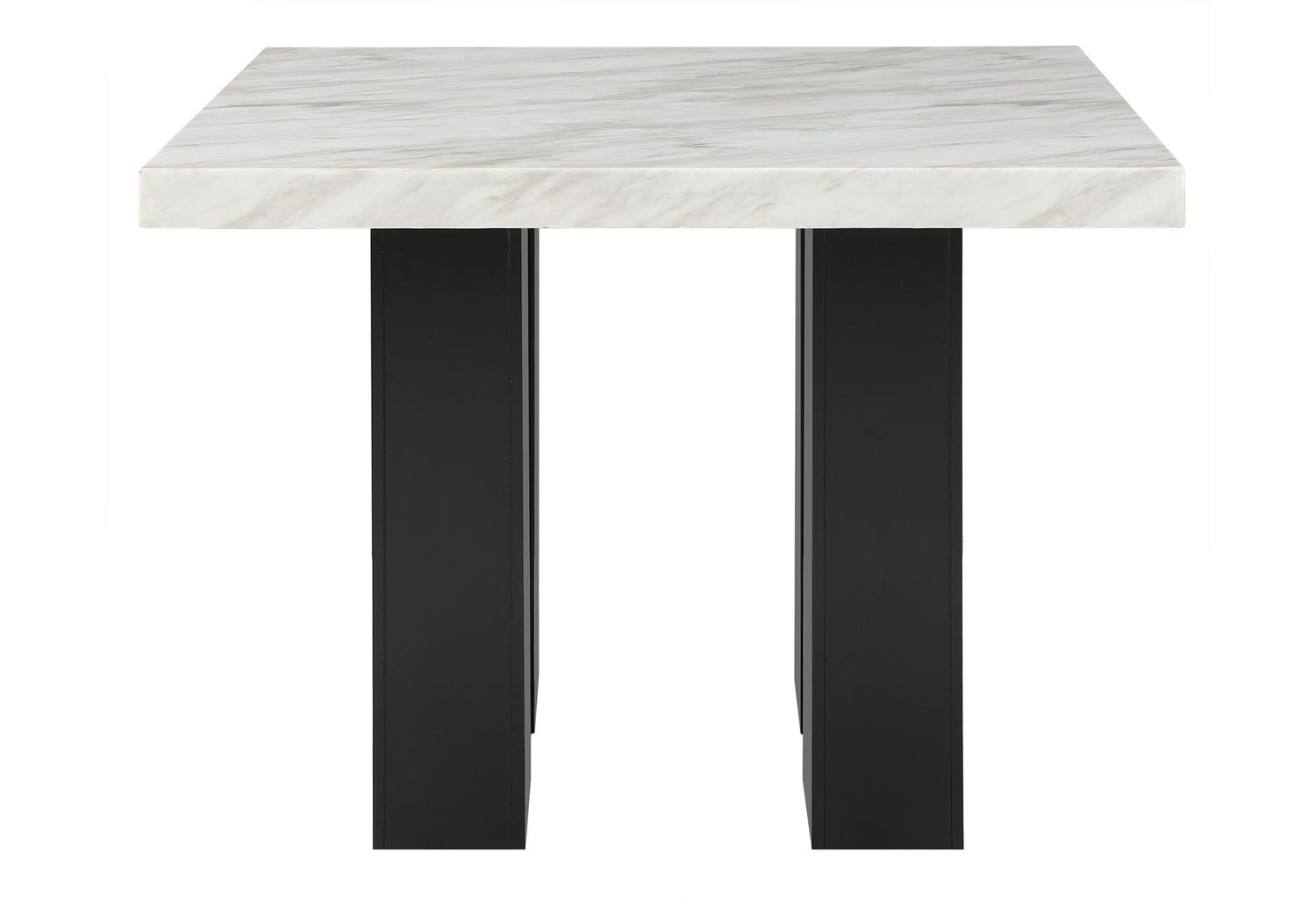 - Elegant Design: This bar table features a sophisticated faux marble top paired with a contrasting double pedestal base, adding a chic and modern touch to any space.
