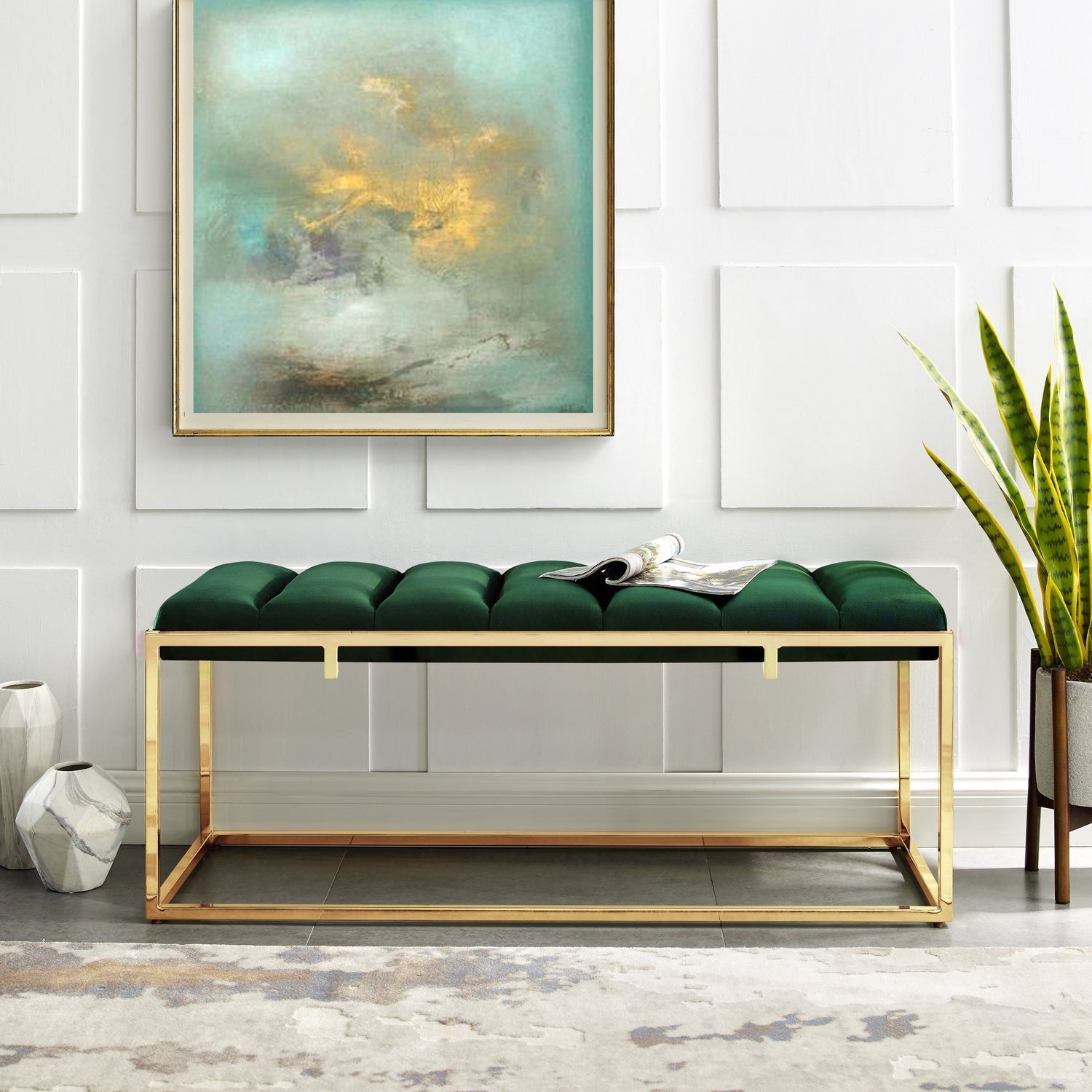 - ELEGANT DESIGN - This bench is a trending combination of sleek and contemporary style, with padded seat and metal base design. Featuring rich velvet upholstery and polished stainless steel metal frame, this glamorous style bench w/ modern appeal really makes a statement and brings luxurious and sophisticated look