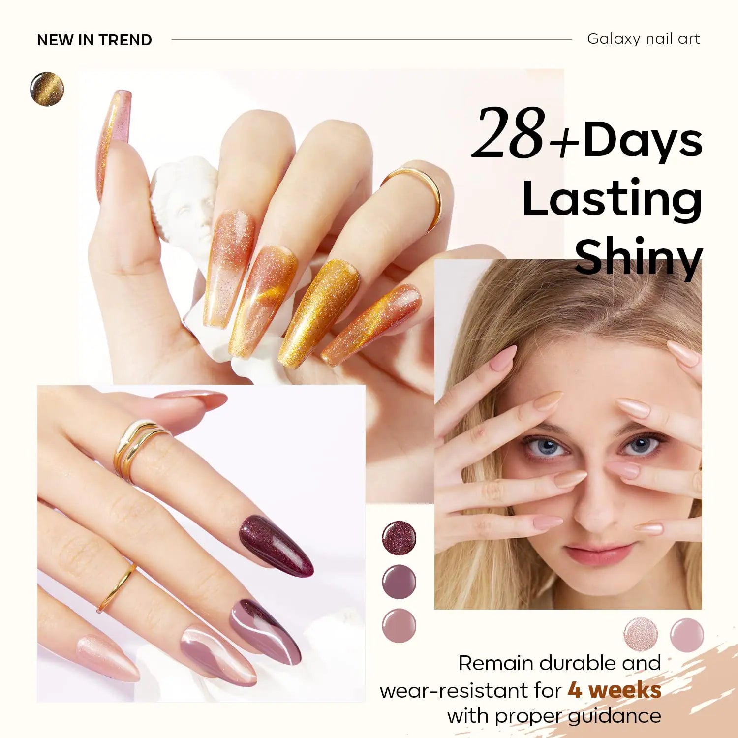 modelones Cat Eye Gel Nail Polish Set 6 Colors, Glitter Nude Shiny Champagne Burgundy Gold Magnetic Effect Sparkle Stunning Home Nail Art Gel Kit Gift A- Cosmo Party - A- Cosmo Party is backordered and will ship as soon as it is back in stock.