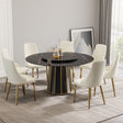 Modern Artificial Stone Round Metal Iron Base Dining Table, Can Accommodate 8 People Artificial Stone Turntable (Not Including Chairs) - Black