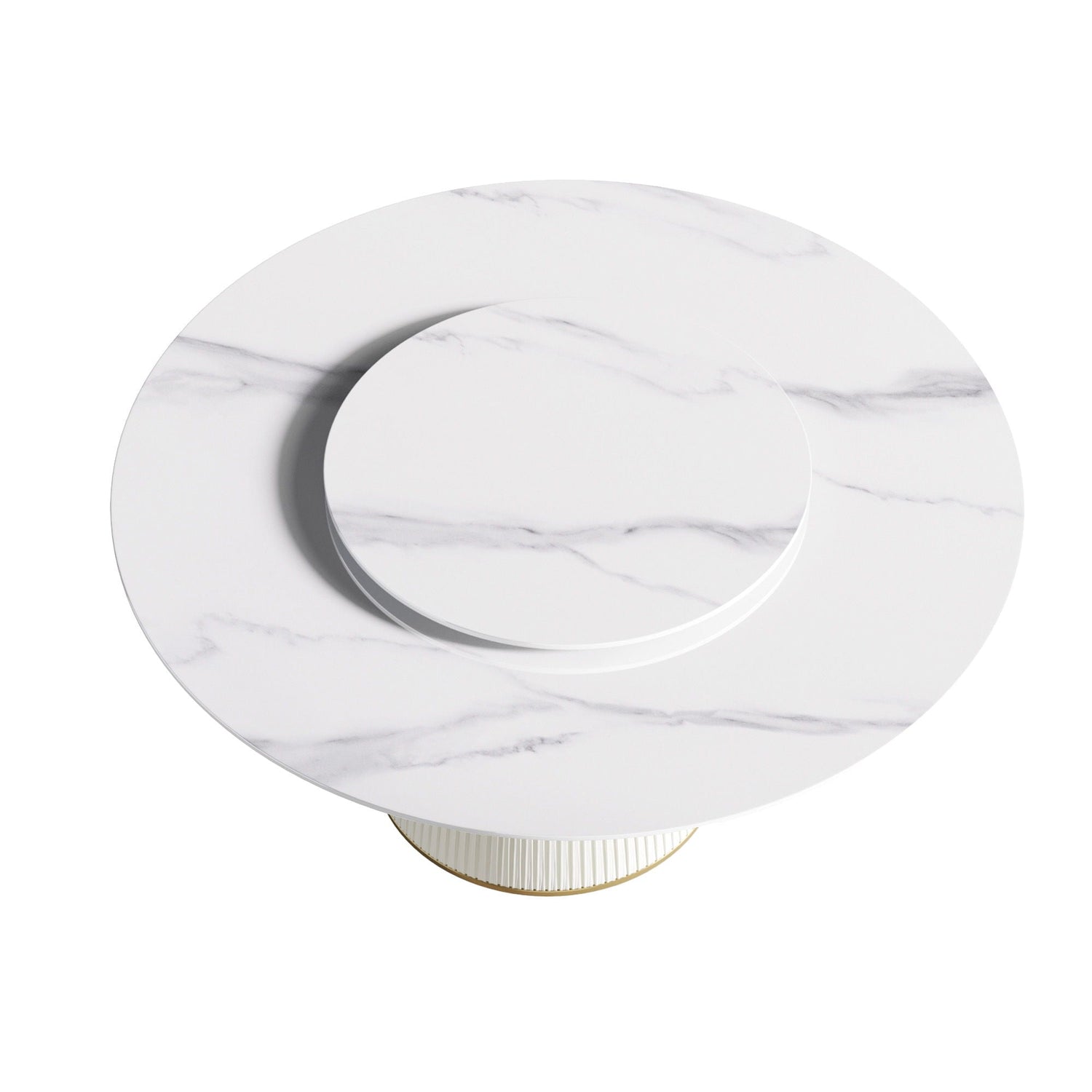 Modern Artificial Stone Round Plywood Base Dining Table, Can Accommodate 8 People, Artificial Stone Turntable (Not Including Chairs) - White / Beige