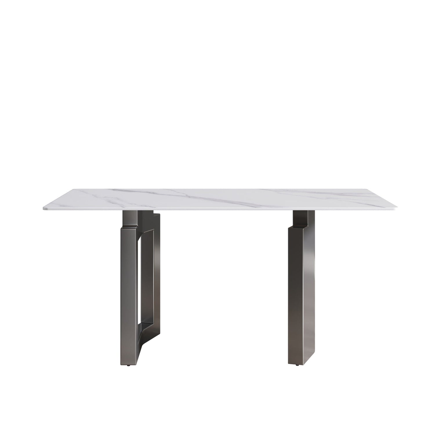 Modern Artificial Stone White Straight Edge Metal Leg Dining Table by Couch.com
