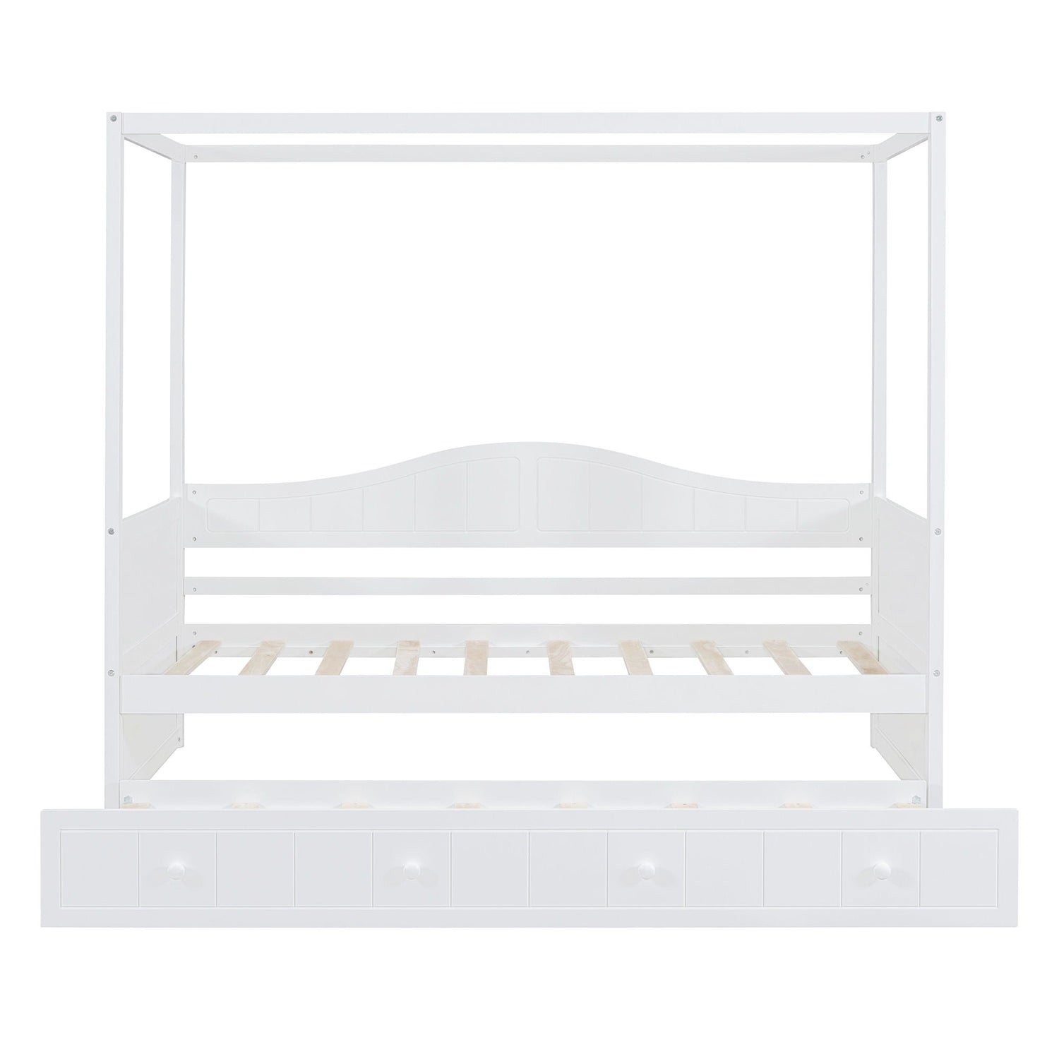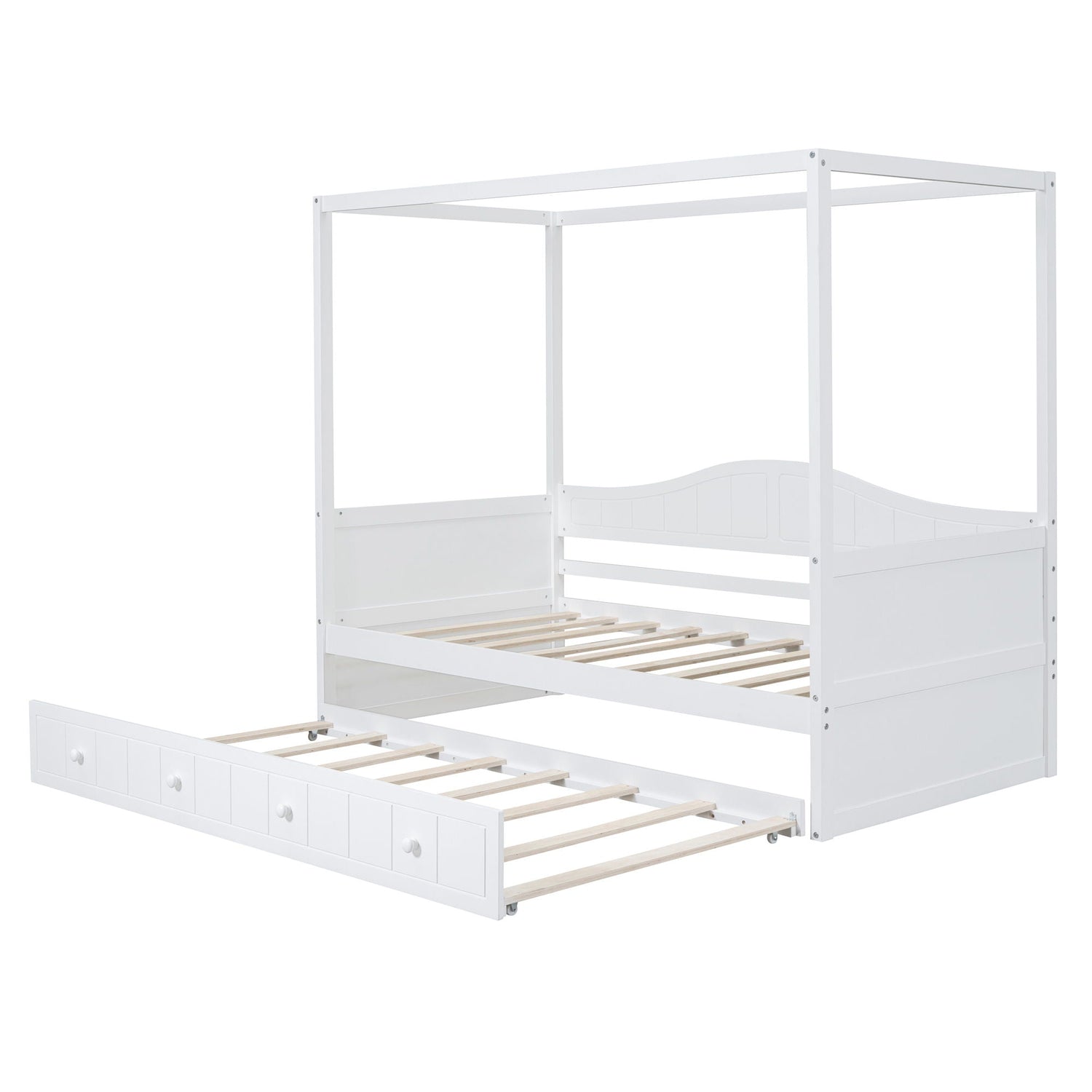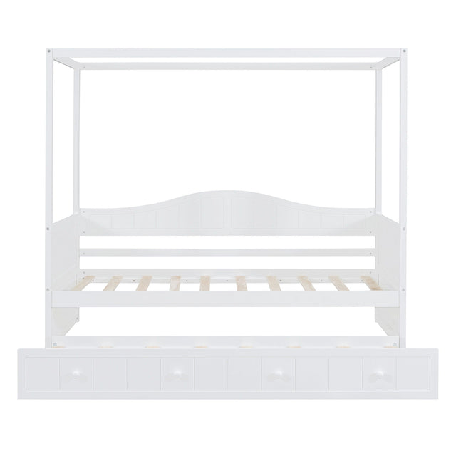 Twin Size Canopy Day Bed With Twin Size Trundle - White