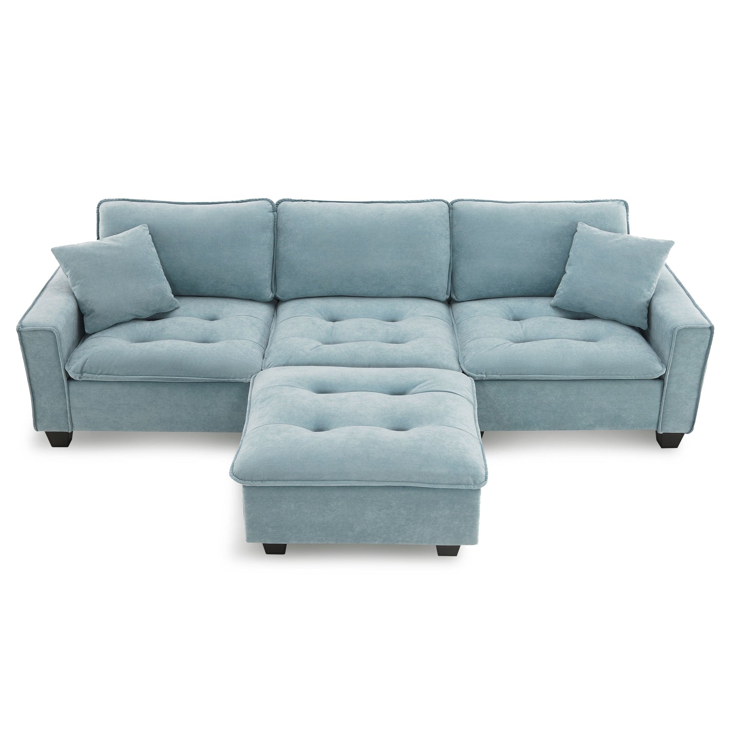 Modern Convertible Sectional L Shaped Reversible Couch Set With Free Pillows 4 Seat Suede Sleeper Sofa With Ottoman - Light Blue