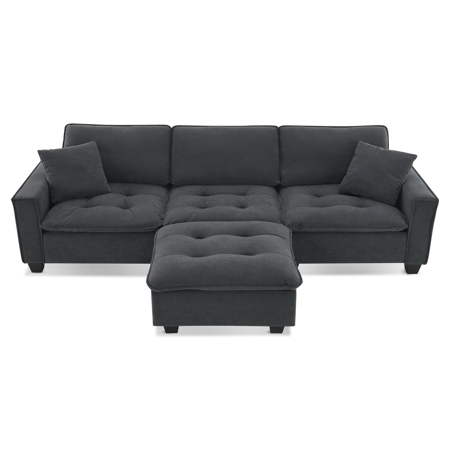 Modern Convertible Sectional L Shaped Reversible Couch Set With Free Pillows 4 Seat Suede Sleeper Sofa With Ottoman - Dark Gray