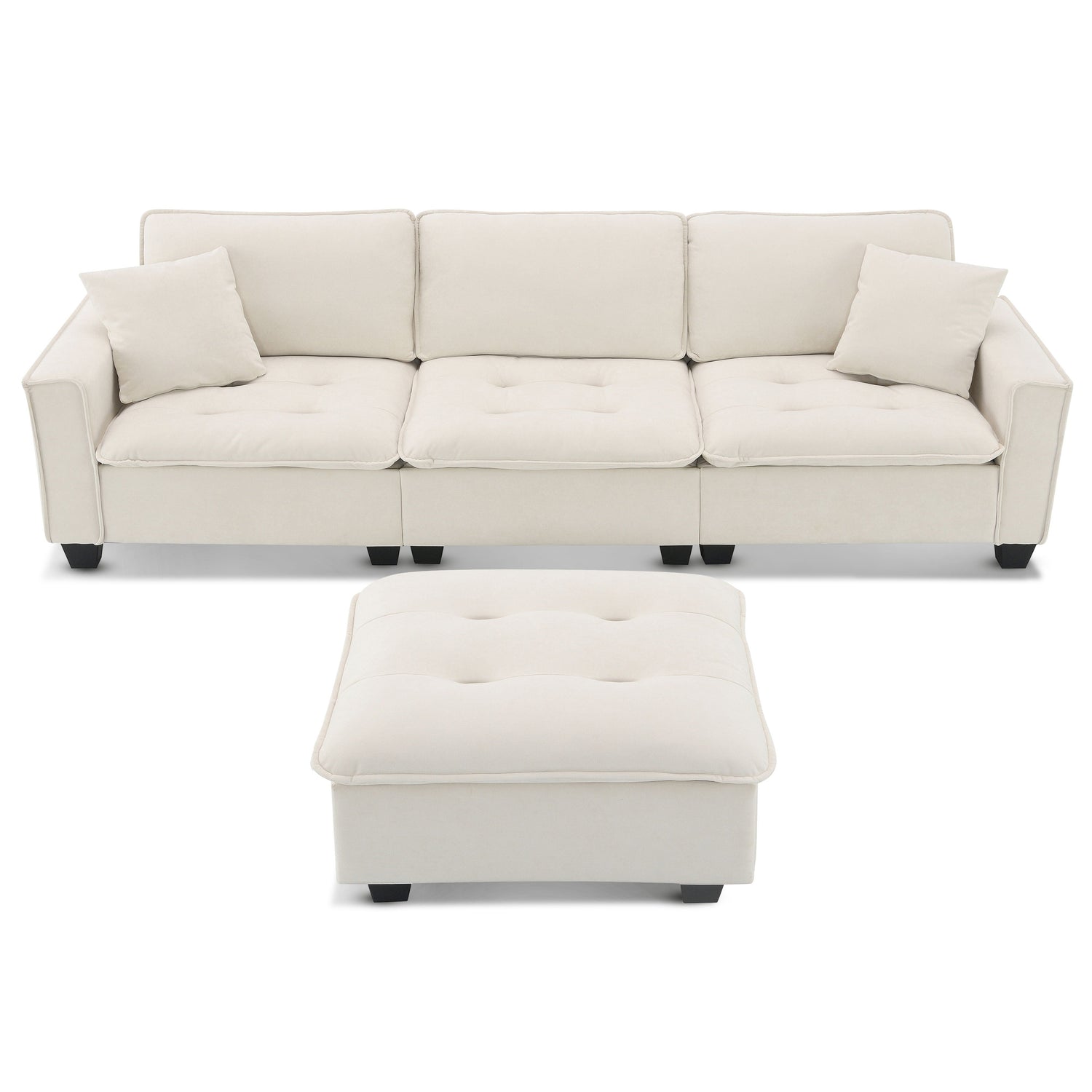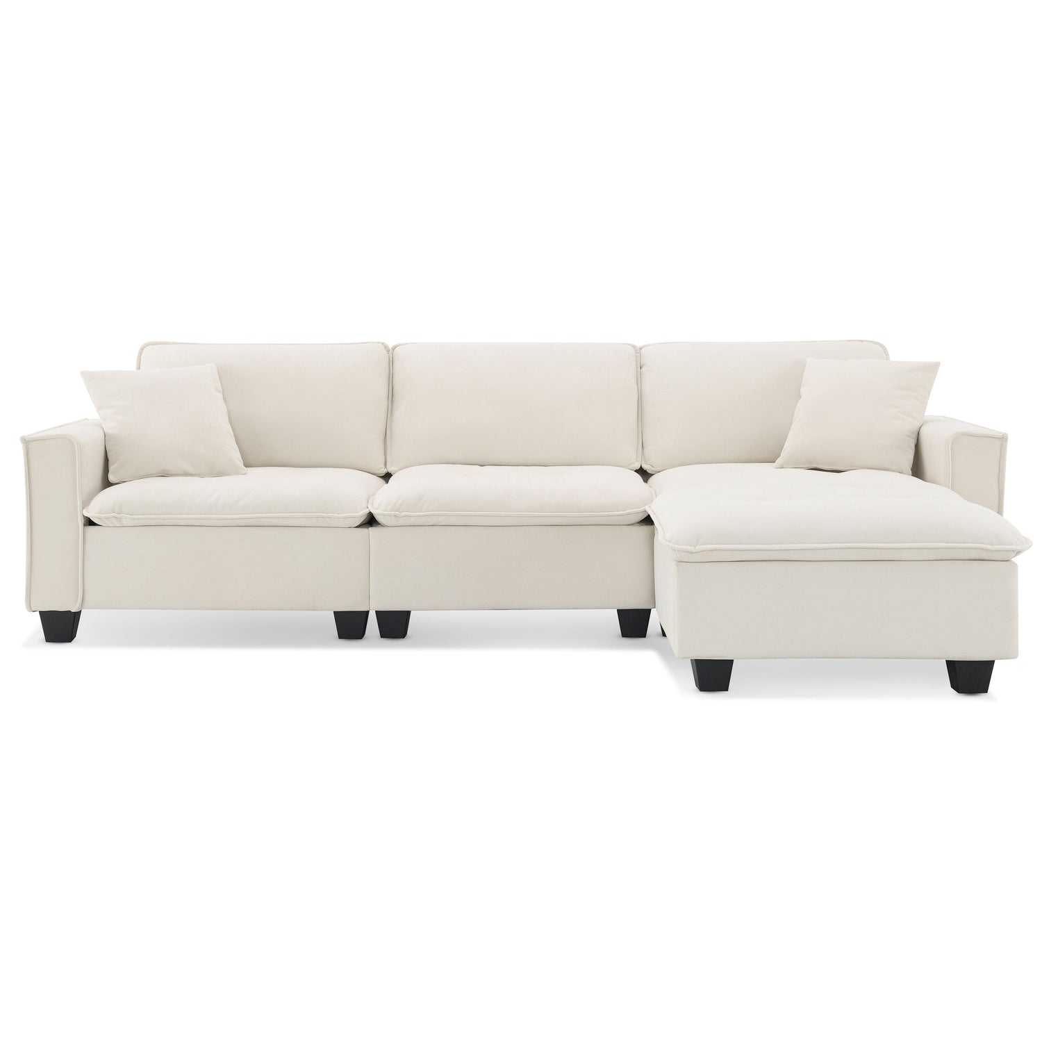 Modern Convertible Sectional L Shaped Reversible Couch Set With Free Pillows 4 Seat Suede Sleeper Sofa With Ottoman - Beige