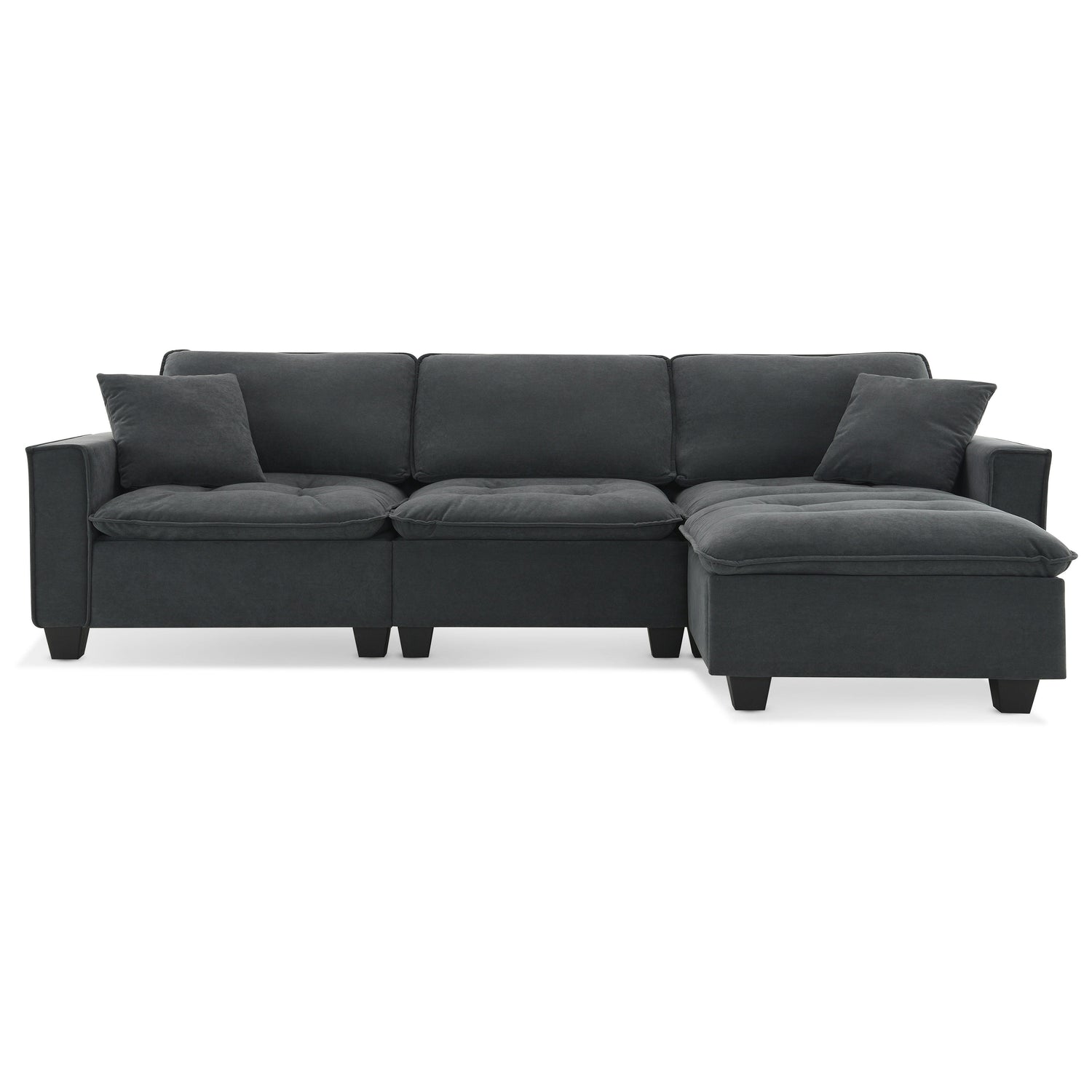 Modern Convertible Sectional L Shaped Reversible Couch Set With Free Pillows 4 Seat Suede Sleeper Sofa With Ottoman by Couch.com