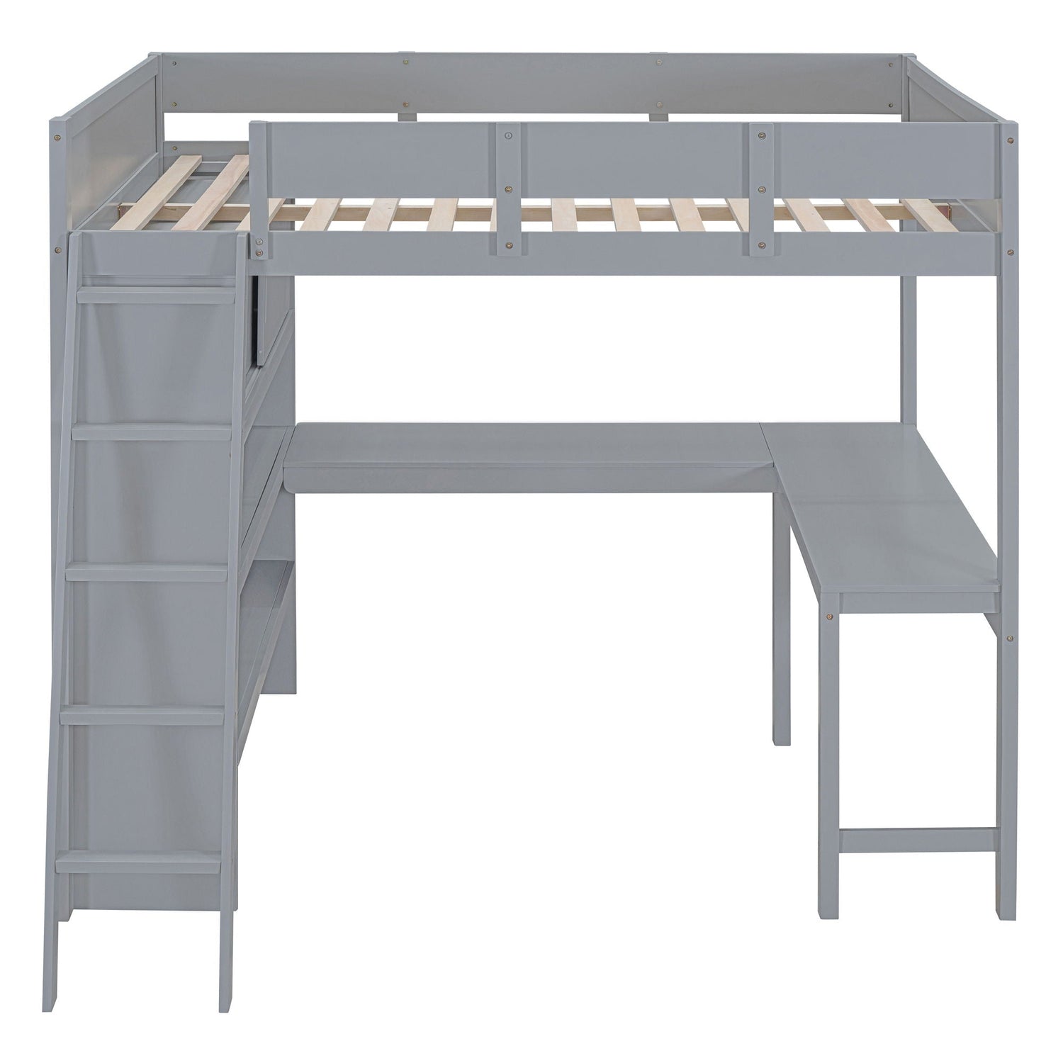 Full Size Modern Loft Bed With Desk And Shelves - Gray