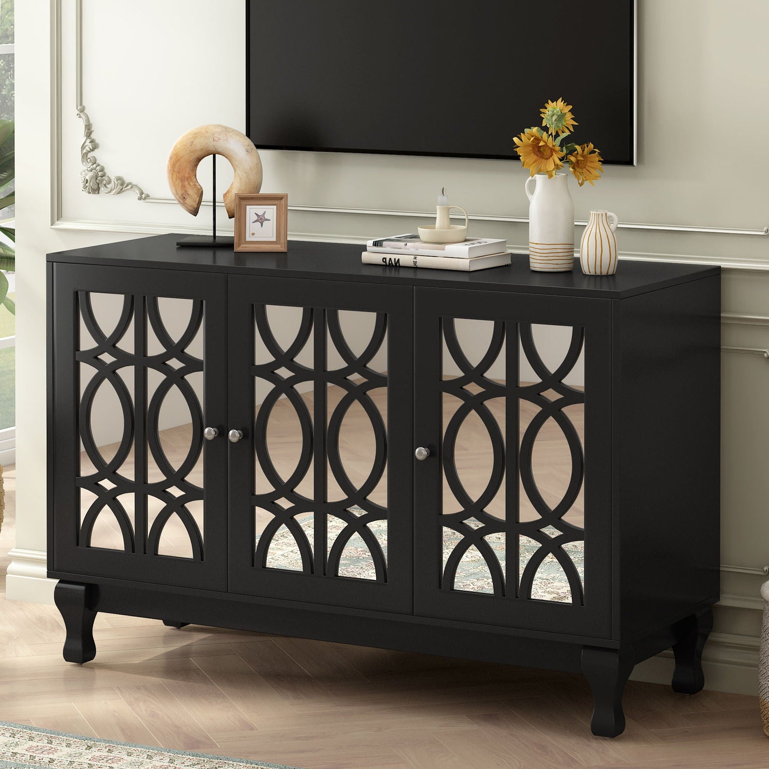 - Charming Features: The high-quality mirrored cabinet doors are embellished with floral window decoration, combining elegance and classic beauty, while enhancing the sense of space in any room.