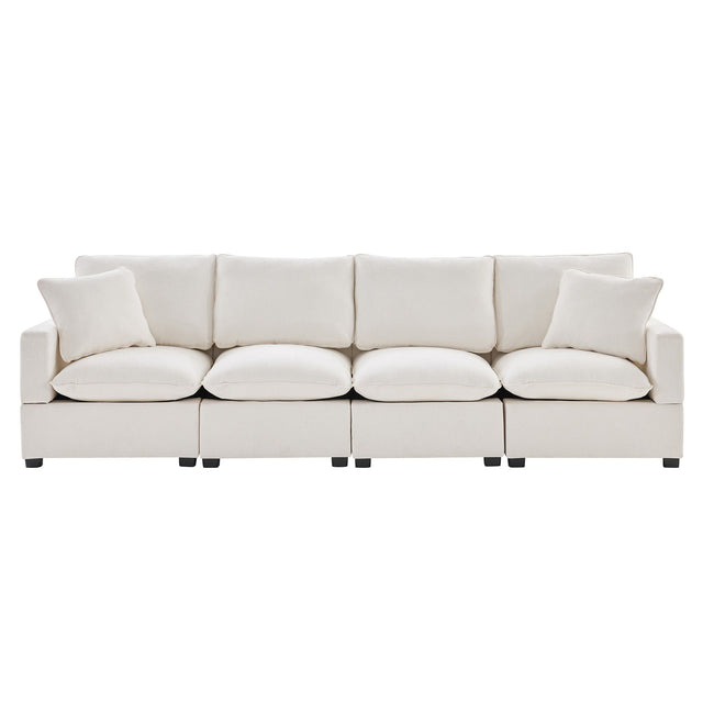 Modern, Modular Sofa, 4 Seat Chenille Sectional Couch Set With 2 Pillows Included, Freely Combinable Indoor Funiture - White