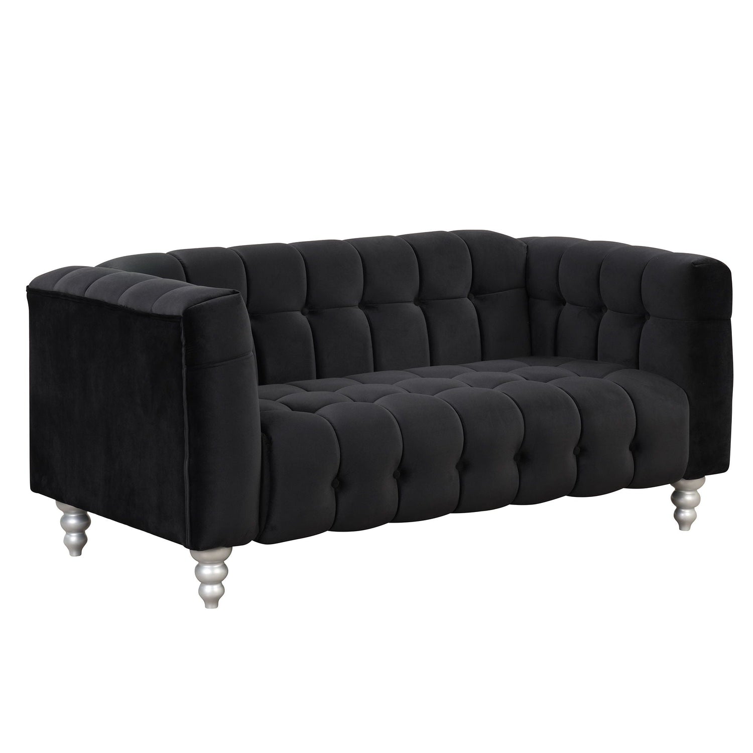 Modern Sofa Dutch Fluff Upholstered Sofa & Solid Wood Legs, Buttoned Tufted Backrest - Black